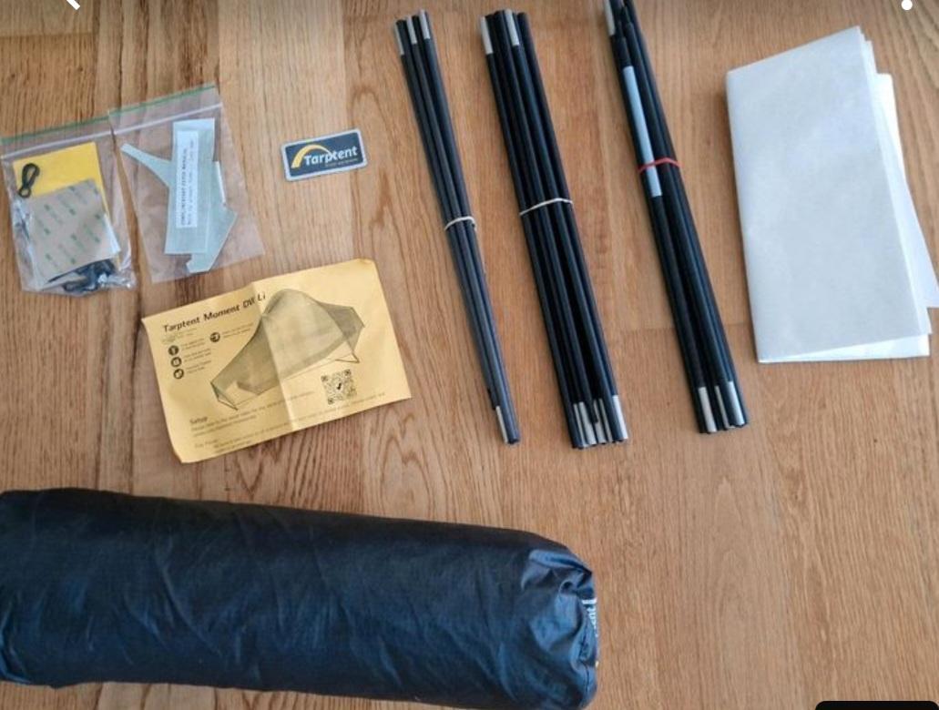 Ich verkaufe mein neues Tarptent Moment Li DCF Zelt mit mesh inner. Es wurde noch nie aufgebaut, ist aber selbstverständlich nicht komprimiert gelagert. Es ist eine Bogenstange aus Carbon dabei, zwei Stangen für den freistehenden Modus in Syclone (einmal Ersatz) und ein origonal Tyvek Groundsheed. 680 VB