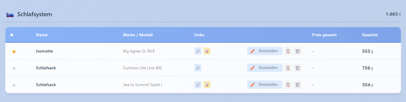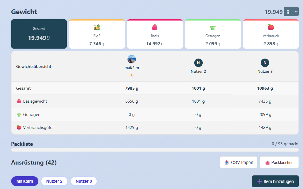 LighterPack 2.0? Ich hab da mal was gebaut und freue mich über euer Feedback!