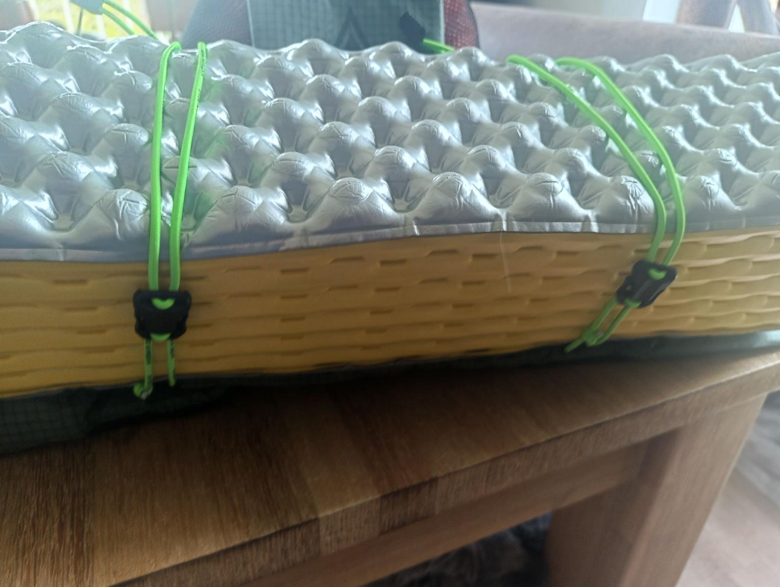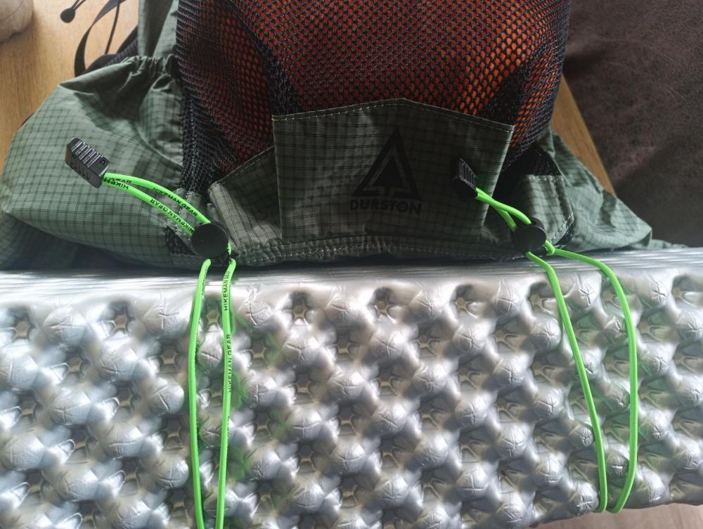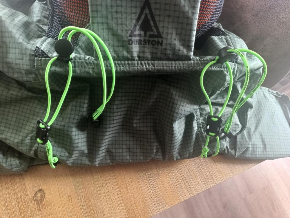 Und dann habe Ich noch meinen neuen Durston Kakwa 55 (2026 Ultragrid) etwas gepimpt mit ein paar elastischen Straps um am Boden um leichte & voluminöse Ausrüstung zu befestigen. -