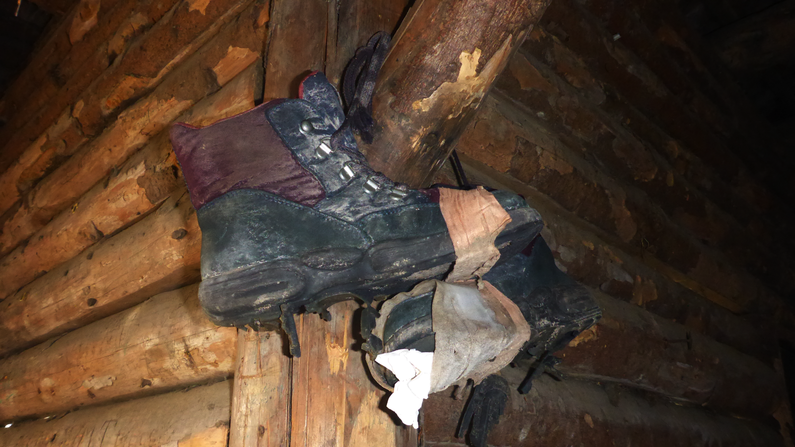Im Innern der Bolberghütte auf dem Bolberg kommen Erinnerungen an den Schuh-Baum auf dem Appalachian Trail hoch ..........