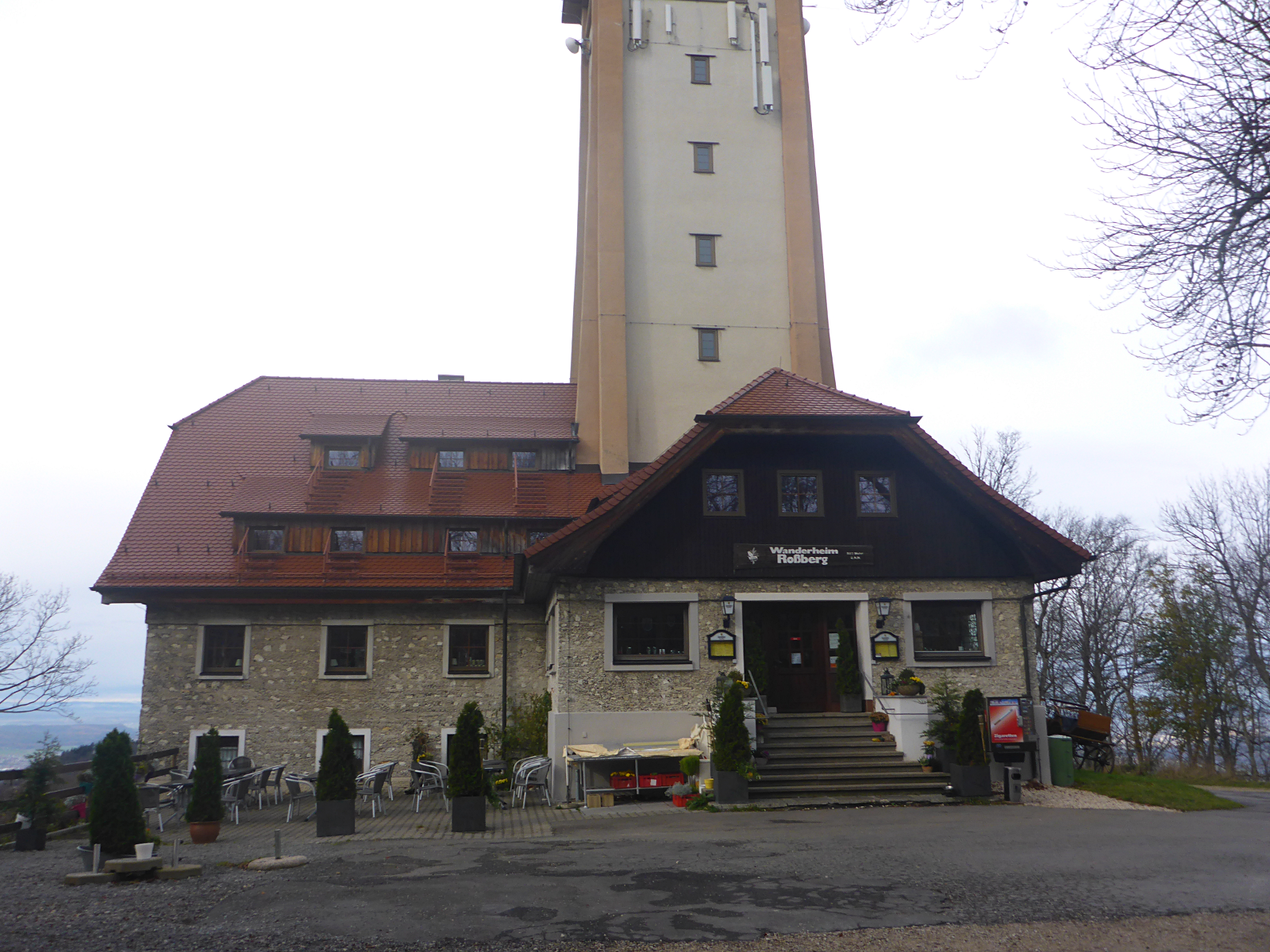 Das Wanderheim des schwäbischen Albvereins auf dem Rossberg. Von dort muss man eine Wahnsinns-Aussicht in der Dämmerung haben. Die Zimmer befinden sich wohl auch im Turm. Ich hatte heute wieder das "Glück", dass das Wanderheim bis 20.11.2014 geschlossen ist.