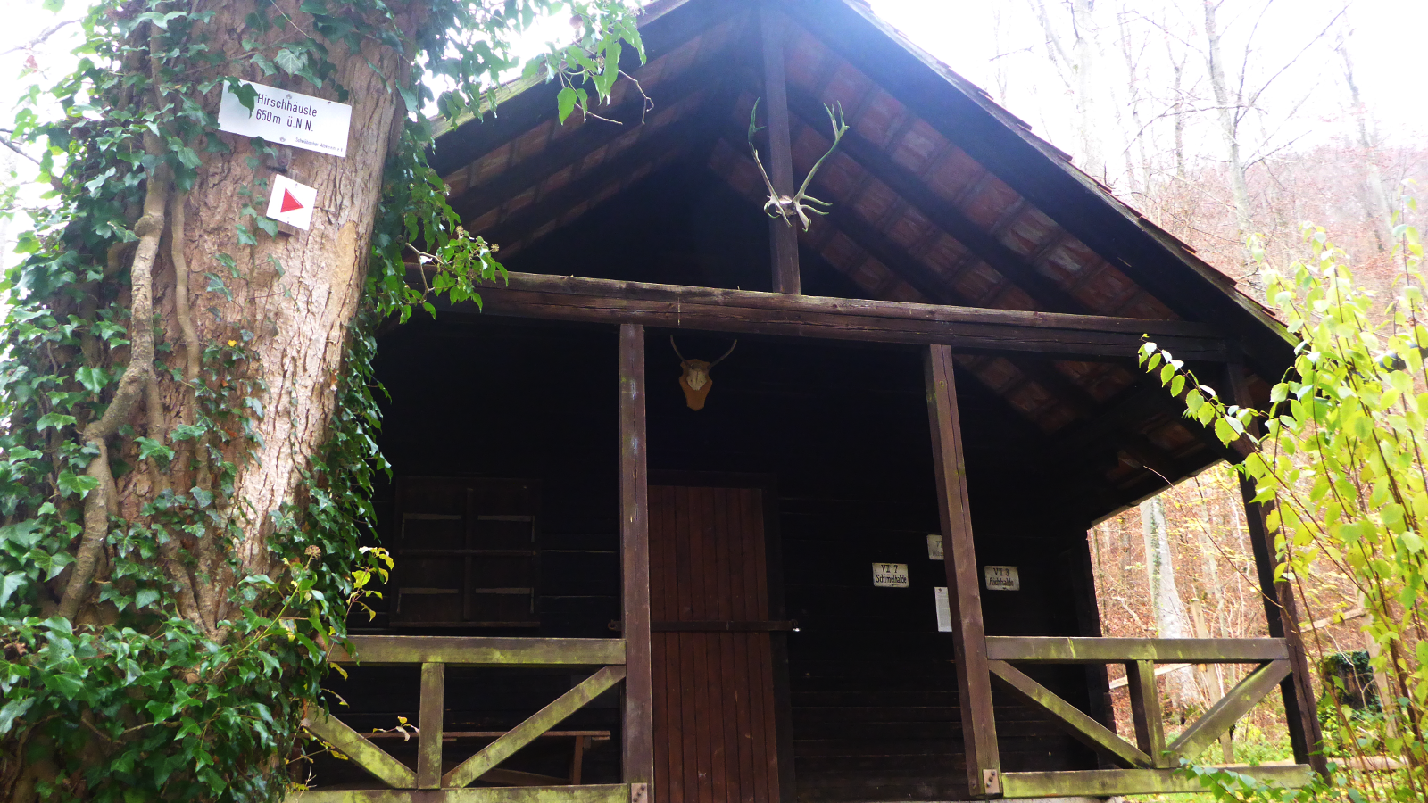 Die "Hirschhäussle" - Hütte ist wohl in privater Hand und fest verschlossen. Ich vermute eine Jagdhütte. Theoretisch könnte man evtl. im Vorbau nächtigen, aber ich empfehle, besser den Anstieg zum Bolberg noch zu bewältigen und die dortige Bolberg-Hütte zu benutzen.