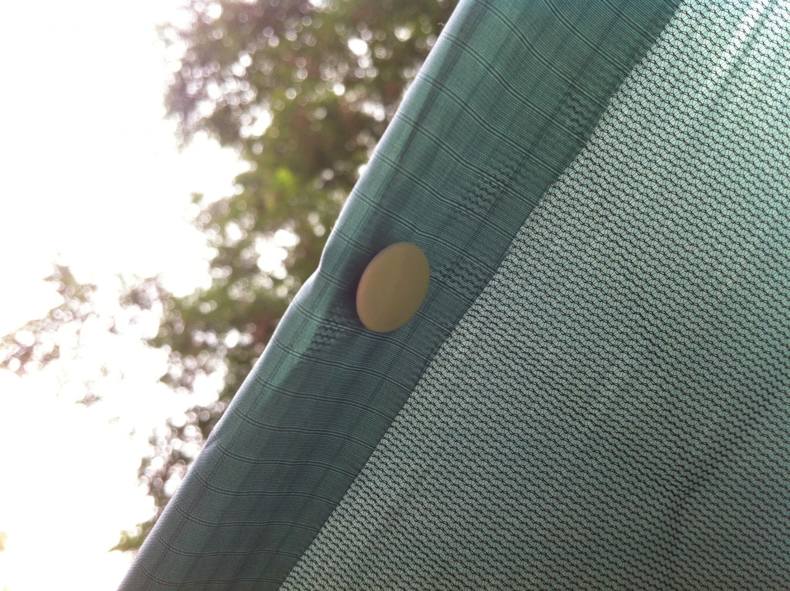 Hier ist gut ersichtlich, wie das Bug Net an der Ponchotarp-Hülle mittels KAM snaps befestigt ist