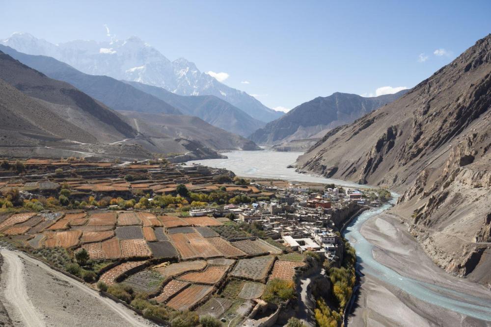 Jomsom - Sauru – strahlend blauer Himmel mit einigen Gipfelwolken Fr 10.11.17 In der Nacht wache ich leider mit starken Halsschmerzen auf und kann nicht gut schlafen. Wir brechen wie immer um 6:00 Uhr auf und frühstücken in dem sehr schönen Dorf Dhumba. Es gibt Kartoffel Omelett und Apfelpfannkuchen – sehr lecker! Diese Etappe ist wirklich wunderschön, vielleicht eine der schönsten. Das entschädigt für die gestrige Schotterpiste. Leider bin ich ziemlich platt und wir machen um 14:00 in Sauru schluss für heute Es gibt Chomei (gebratene Nudeln) zu Mittag. Heute haben wir nur 19km geschafft, es fehlen noch 8km bis Kalopani. Sauru - Ghasa – strahlend blauer Himmel, morgens immer noch Frost Sa 11.11.17 Die heutige Etappe hat wieder einmal wunderschön begonnen. Wir haben das Alpenglühen am Dhaulagiri fotografiert und danach ging es 2-3h auf einem herrlichen Wanderweg immer am steilen Flussufer entlang. Der Wald ist eine tolle Abwechslung. Später wechseln wir die Flussseite und finden in der tiefer gelegenen Region wieder wilden Hanf. Meine Halsschmerzen sind etwas besser, dennoch bin ich noch ziemlich schlapp. Heute übernachten wir im Eagle Nest Guest House. Das Zimmer ist OK, der Apple Pancake schmeckt und das Dhal Baht ist auch OK. Ghasa – Dana – Sonne pur! So 12.11.17 Der Weg führt uns heute auf einem schmalen, in den Fels gehauenen Pfad. Wir machen nach einer wunderschönen 2/3 Etappe Feierabend. Pausennachmittag! Ich verbringe den Nachmittag im Schlafsack und ich merke wie gut mir das tut. Felix erkundet in der Zwischenzeit den Ort und macht tolle Aufnahmen. Langsam geht es mit wieder besser und ich schlafe in dieser Nacht richtig gut.1 Punkt