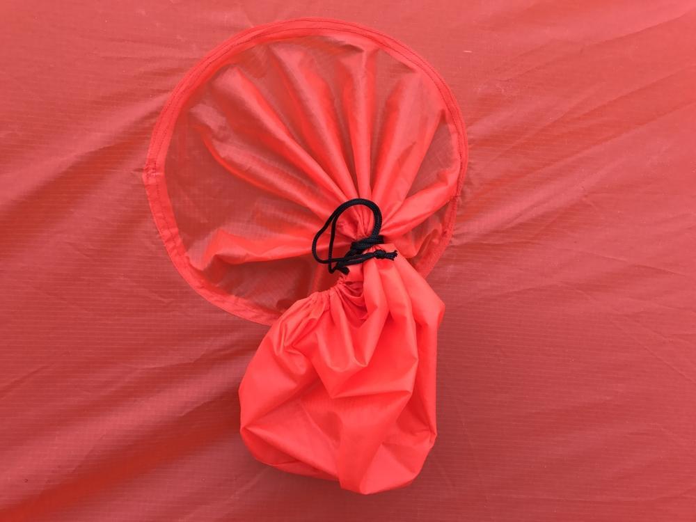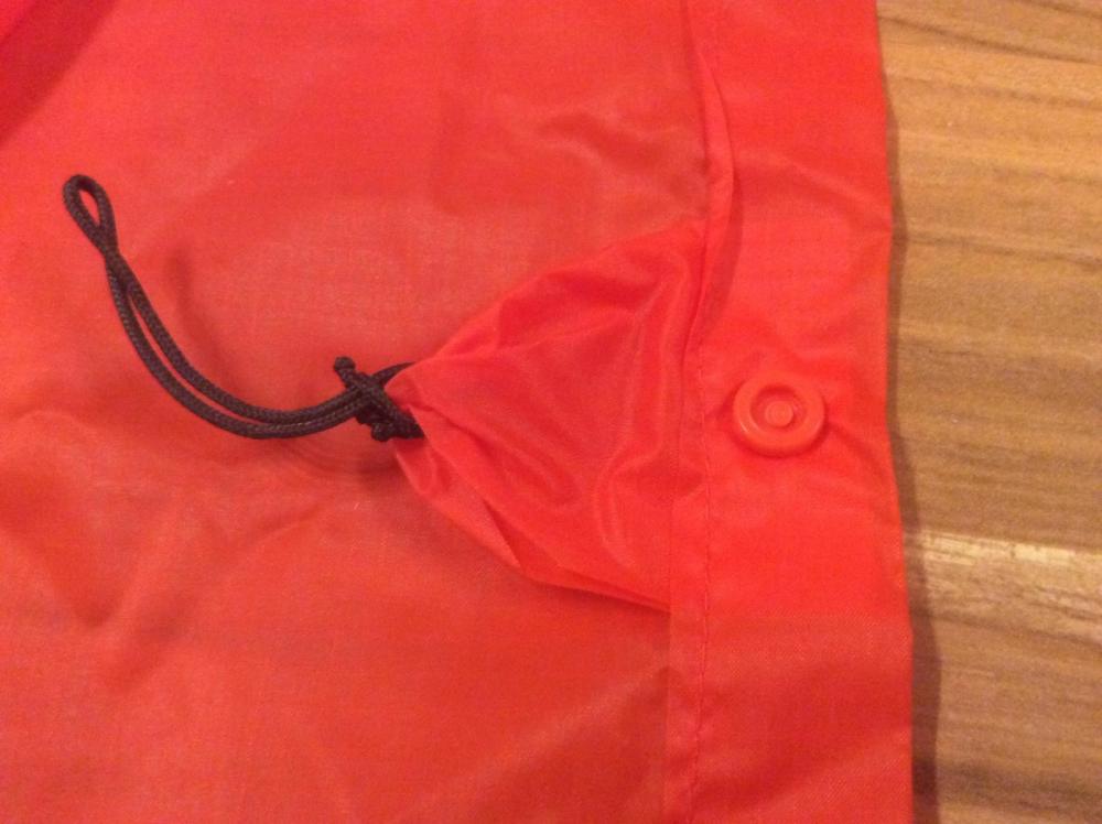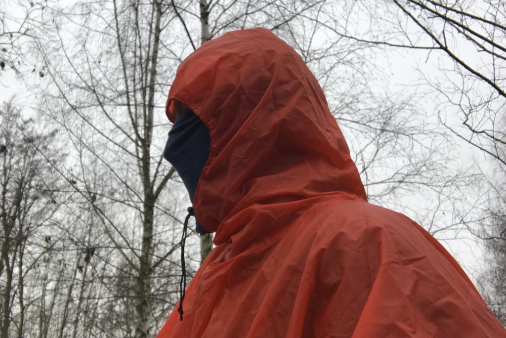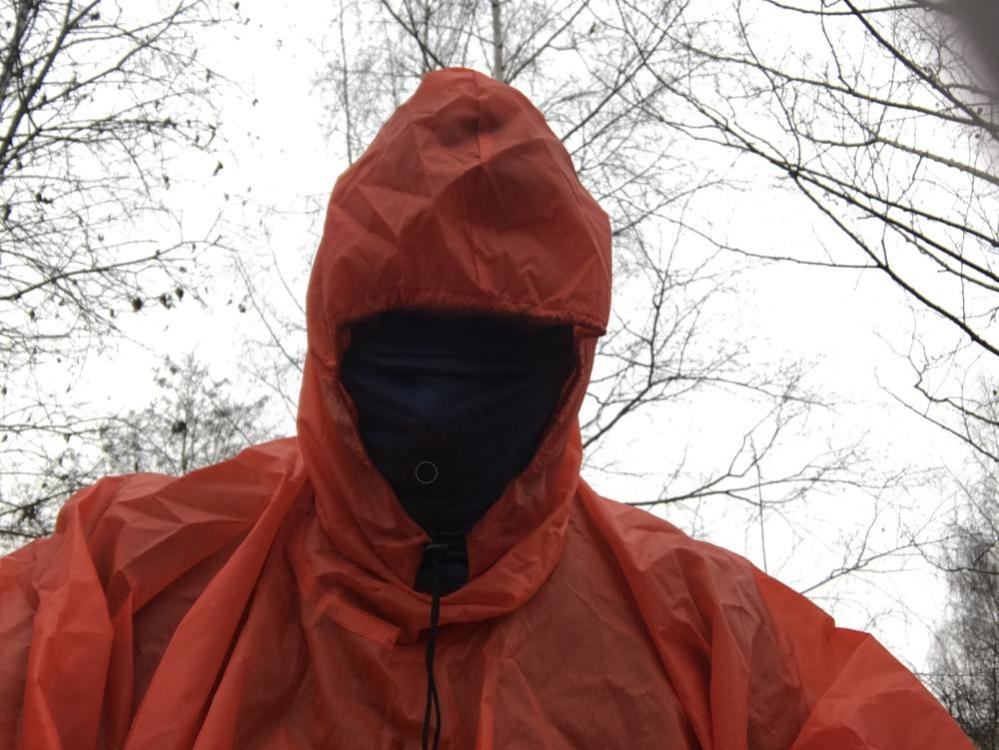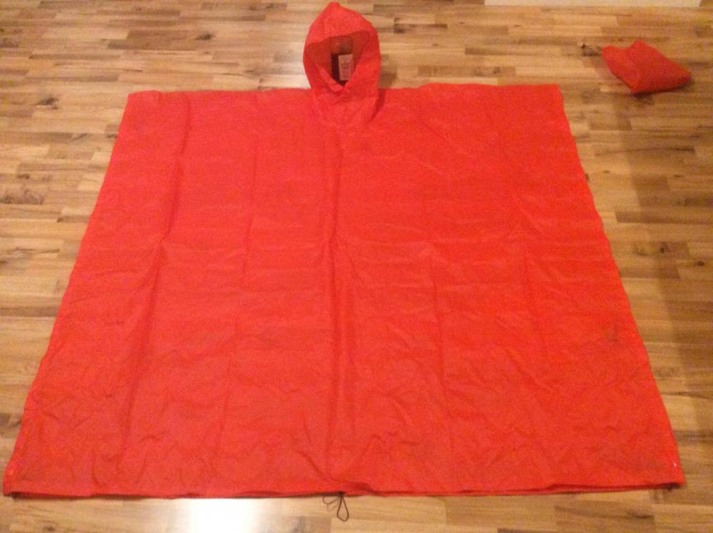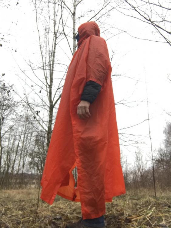 Bei meinem orangeroten Ponchotarp habe ich mich von GoLite inspirieren lassen, es aber an meine persönlichen Bedürfnisse angepasst. Das fängt mit der Farbe an. Wißt ihr, wie es die Stimmung hebt, wenn man stundenlang im Regen marschiert und vor einem leuchtet es in hellem Orange statt stumpfem Grün? Das gleiche gilt, wenn man unter dem Tarp ausharren muss. Stealth camping? Ach was, nachts sind alle Katzen grau. Breite ist gleich Stoffrollenbreite minus zwei mal daumenbreiter Saum, bei mir netto 142 cm. Die lange Seite der Stoffbahn habe ich mittig gefaltet, das ergab die spätere Schulterlinie. Länge an Bauch und Rücken gleich, je netto 135 cm. Für mich perfekter Wadenschutz bei Verwendung ohne Rucksack und immer noch lang genug bei Verwendung mit Rucksack. Das Kapuzenloch ist ein Kreis mit 22 cm Durchmesser, der oben die Schulterlinie berührt. Nach dem perfekten Schnittmusterfoto von @wilbo spare ich mir die Beschreibung der Kapuze. Nur noch ein Tip: Unbedingt ein Muster der Kapuze aus einem Stoffrest anfertigen! Jeder Kopf ist anders und am Muster kann man sich seine persönliche Idealkapuze recht einfach mit Wäscheklammern und Sicherheitsnadeln empirisch konstruieren. Die Kamsnaps sitzen bei mir im Saum jeweils 20, 50, 75, 100 und 130 cm von der Schulterlinie entfernt. Zur Verstärkung habe ich jeweils einen 10x5 cm Stoffstreifen quer gefaltet und in den Saum gesteckt. Damit sitzen die Kamsnaps auf 4 Lagen Stoff und man kann ordentlich an ihnen zerren, ohne den Poncho zu beschädigen. In diese Stoffstreifen habe ich kleine Schlaufen aus 1-mm-Schnur eingehängt, an denen ich mit Hookworms von Dutchwaregear die Tarpabspannung bzw. Heringe befestige. Ein weiterer Nutzen der Stoffstreifen: Man kann im Tarpmodus zusätzlich eine Schnur oder dünne Stange fädeln (hier mit dem Zollstock dargestellt), was die Stabilität deutlich erhöht. Am unteren Ende des Ponchos habe ich an der Vorder- und Rückseite jeweils mittig im Saum versteckt eine weitere Stoffschlaufe angebracht. Auch hier wieder mit Schnurschlaufe und der Möglichkeit, Schnur oder Stange durchzustecken. Im Tarpmodus wird die Kapuze zugebunden und eventuell noch mit einem Gummiring gesichert. Ich könnte mir durchaus vorstellen, die Kapuze mit Kamsnaps zusätzlich an der Tarpwand zu befestigen. Dann sollte aber eine Verstärkung unter dem Druckknopf angebracht werden, damit man ihn bei ruppigem Umgang nicht herausreißt.3 Punkte -