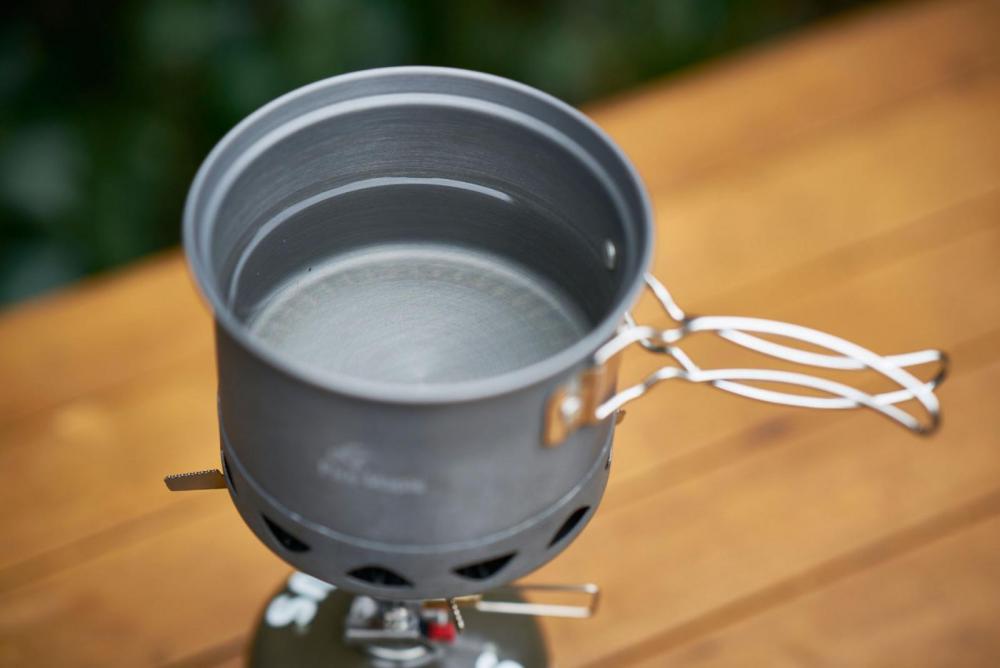 Der Firemaple FMC-217 hat eine sinnvolle Füllhöhe von 600 ml und wiegt mit Titan Deckel gut 180 g. (Hier mit 500 ml gezeigt) Mit dem Soto Windmaster, (80 g) kocht der halbe Liter in ca. 2 Min. und verbraucht dabei 7g Gas. Wenn man das Gas runter regelt, verlängert sich die Kochzeit auf 4 Min. und der Verbrauch verringert sich auf 5,5 g. Runter geregelt brennt der Windmaster sogar noch leiser als ohnehin schon. Für mich kommt dann schon an den angenehm leisen MSR reactor ran. Das Ganze Setup wiegt, exklusive Gaskartusche 260 g, mit Packsack 285 g. Im Großen und Ganzen durchaus konkurrenzfähig zu den System-Kochern und dabei deutlich flexibler! (*meins) Der Deckel passt mit Kartusche leider nicht mehr oben darauf und kommt unten in den Packsack. VG. -wilbo-1 Punkt -