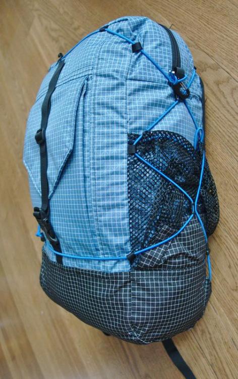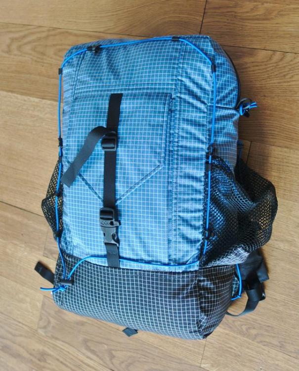 Das Volumen zu Gewichtsverhältnis zu optimieren stand bei dem Projekt nicht so sehr im Vordergrund. Es ging eher darum, dass er einigermassen robust ist und an den Kinderrücken passt ohne blöd auszubeulen. Viele kommerzielle Kinderrucksäcke sind einfach "normale" in klein. Meiner Erfahrung nach funktioniert das aber nicht gut. Zum Beispiel passt ein Hüftgurt in diesem Alter einfach nicht an den kindlichen Körper und ist dann vor allem im Weg. Wichtig war mir, dass genügend Volumen verfügbar war, Taschen für die "Autonomie", und keine komplizierten Schnallen und Deckel. Das schwere Zeug trage eh ich. Mit der durchgehenden Rückenplatte wiegt der Rucksack 550g. Das Volumen ist nicht so einfach zu schätzen, da der Rucksack nicht quaderförmig bleibt sondern gefüllt runder wird. Ich schätze, dass ca. 25 Liter hineingepackt werden können. Grösser ging nicht gut, siehe oben. Der Rucksack ist natürlich zumindest farblich das kleine Modell von diesem hier :1 Punkt