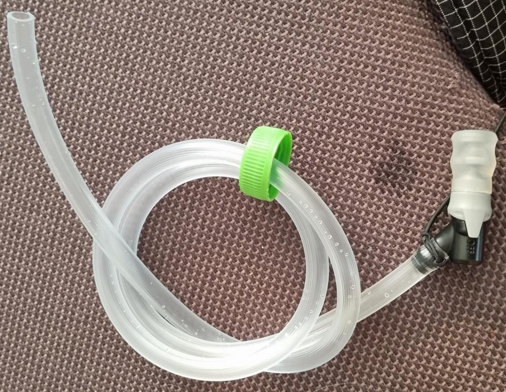 Servus, Noch mehr MYOG von mir heute. Hab mir nen Trinkschlauch für meine PET Flasche in der Seitentasche des Rucksacks gebastelt. Materialkosten 4,50€ für das Mundstück, der Rest war daheim. Ich habe immer zu wenig getrunken beim laufen, weil ich den Rucksack nicht absetzen wollte. Das Problem ist hoffentlich jetzt gelöst Super easy mit Schere und Bohrer. Habs mit etwas Elastikkordel vorne am Träger befestigt, damit es in Reichweite ist. Ich hoffe, sowas gabs noch nicht und es macht Sinn, das ich das zeige.1 Punkt