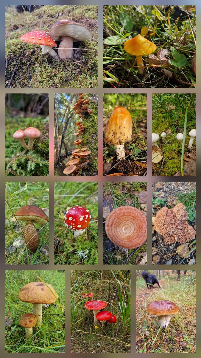 Da ich krank auf dem Sofa rumliege, kann es hier nun weiter gehen. Am Morgen von Tag Sechs war die Situation folgende: Den Weg mit der nächsten offiziellen Sörmlandsleden Etappe fort zu setzen, war keine Option, da ich mich wegen des nahenden Endes der Tour nicht viel weiter vom Ausstiegsbahnhof entfernen wollte. Also beschloss ich, zurück zur Skottvångs Gruva zu laufen und dort in der Windschutzhütte, die ich am Vortag bereits inspiziert hatte, zu nächtigen, und an Tag Sieben dort einen Herumlunger-Tag ein zu legen, zumal das Wetter auch wieder regnerisch angekündigt war. Am Abend zuvor hatte ich gemerkt, dass ich gerade ein bisschen genug von dichtem Wald und schmalen Pfaden hatte und beschloss daher, zur Abwechslung mal Schotter-Waldstraße zu laufen. Was in der Regel eher nervt und langweilig ist, fand ich heute mal ganz nett. Am Wegesrand sah ich nicht nur absurd viele Fliegen- und Steinpilze, sondern auch einen offenbar dort entsorgten Haufen alter Äpfel, von denen ich mir einen schönen raussuchte und freudig verspeiste. Endlich mal wieder frisches Obst! Als ich an der angepeilten Windschutzhütte ankam, war es gerade mal später Vormittag, also beschloss ich, noch eine Schleife zum Mellan Mårviken zu laufen. Der Weg dorthin führte vorbei an einem Geflügelhof (das Geflügel war "natürlich" gut weg gesperrt und nur zu hören, aber nicht zu sehen) und ein paar wenigen Wohnhäusern auf großen Grundstücken, netten Gärten und kleinen Nebengebäuden, unter anderem auch einem Bed and Breakfast. Kurz vor dem See bewunderte ich eine kleine Herde Landschaftspflege-Rinder, die das Glück hatten, im Familienverband leben zu dürfen. Ein eher seltener Anblick. Hier ein Bild der durch die Beweidung erhaltenen Landschaft: Am See angekommen planschten Hund und ich ein wenig herum (waschen musste mal wieder sein...) und suchten uns dann ein sonniges Plätzchen mit schönem Ausblick, um einen Mittags-Snack zu verspeisen. Da ging er hin, der letzte Rest Schokolade. Auf dem Rückweg widmete ich mich der Mission Pilzfotografie. Die Pilzvielfalt gehört zu den Aspekten der Tour, die mich am meisten erfreuen. Festgehalten habe ich davon nur einen Bruchteil. Außerdem führte uns der Weg durch ein kleines Bachtal, in dem Unmengen von riesigem Schachtelhalm wachsen. Es fehlten nur noch die Dinosaurier. Stattdessen traf ich einen Trupp melancholisch flötender Dompfaffen. Gegen Abend war wieder Regen angesagt, also richtete ich mich gemütlich in der Schutzhütte ein und sammelte einen kleinen Vorrat trockenes Feuerholz. Zum Abendbrot gab es einen kleinen kulinarischen Fail: Nudeln mit Maggi-Fix für Schinken Sahne Gratin. Das Zeug hat eine komische Farbe und schmeckt künstlich nach Schinken. Den echten hatte ich leider zuhause vergessen... Dieses Experiment muss nicht unbedingt wiederholt werden.3 Punkte