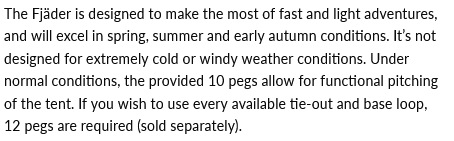 Hallo zusammen, das Fjern Fjäder hat sich bei meiner Wintertour am Mont Ventoux hervorragend geschlagen. Entgegen meines letzten Kommentars befindet sich innen doch 1 kleine Aufbewahrungstasche, in die locker Handy, Portemonnaie usw passt. Hab ich doch glatt übersehen, trotz Brille 😎 Aufgebaut ist es ruckzuck. Gestänge in die vorgesehenen Befestigungspunkte stecken, fertig. So ist es freistehend ohne Apsis, wird es windig, gibt es unten 6 Abspannpunkte, zusätzlich noch 6 befestigte Schnüre zum weiteren abspannen. Schlafkabine geräumig, und wenn man die Apsis abspannt stellt man fest wie groß diese ist! Da passt ein 45L-Rucksack locker rein (siehe Bilder), vieles andere auch, und man kann gut kochen ohne Gefahr zu laufen, daß man das schöne Zelt abfackelt. Es hält Regen sehr gut ab, ich konnte trotz Silnylon kein ausdehnen des Materials feststellen, musste also nicht nachspannen. Ich hatte an 2 Tagen starken Mistral, für das Zelt kein Problem, ebenso war die Kälte am Ventoux (ca. -7°) kein Problem. Der Hersteller scheibt ja folgendes : Kann ich so also nicht bestätigen, wobei -7° nun nicht "extremely cold" sind. Mistral mit Böen um die 60km/h sind allerdings schon ne Hausnummer, die 6 unteren Abspannpunkte waren aber absolut ausreichend. Von mir eine klare Kaufempfehlung, ich bin sehr zufrieden. Gruß Michael4 Punkte