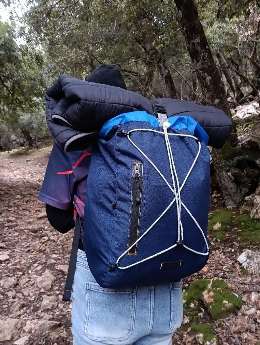 Winterflucht mit Handgepäck - das war der Plan. Wandern, aber in festen Quartieren übernachten mit einigermaßen leichtem Gepäck kompatibel zu den Vorschriften des irischen Billigfliegers führten zu einem speziellen Design eines „AirPacks”: Das Konstruktionsprinzip entspricht in etwa dem Design von Ray Jardin. Folgende Überlegungen und Randbedingungen standen am Anfang: Maximal Größe (konstruiert) 40cm x 30cm x 20cm entsprechend den Vorschriften für kostenloses Handgepäck. klares Design für sicheres Handling beim Transport robuste, stabile Außenhülle um Flixbus und Co. gewachsen zu sein hohes Maß an Wasserfestigkeit trinkblasenkompatibel verstaubare Schulterträger und ggf. Hüftband unauffällige Erweiterungsmöglichkeiten komfortable Kontaktflächen So entstand ein Entwurf mit folgende Features: kubisches Design 300den RS Cordura außen leichtes RS Nylon als Futter und für den Rollverschluß komplett separat eingehängter Inliner aus dünnem, hellen RS-Material mehrlagige Schulterträger mit verstellbarem Brustgurt und Schlauchführung große RV-Tasche an der Front (Innenmaß 25x25cm) separates Rückenfach für Trinkblase und ggf. Sitzmatte pro Pack insg. 12 kleine Schlaufen für optionale Bekordelung (Wanderstöcke anbringen usw.) stabile Befestigung für Reflektorband oder Blinklicht auffällige Greifschlaufe aus Mantel von gebrauchtem Kletterseil Reflektorschlaufen am Schulterträger Da diesmal ein Wandermädel mit am Start war, wurden zwei Exemplare gefertigt. Das Wandermädel bekam exklusiv ein 25mm Hüftband, ich hingegen meine 38mm MOTASY-Schnittstelle zur Handybefestigung mittels SP Connect Adapters und taktischer Schnalle (im Bild unten am linken Träger zu sehen). MOTASY heißt „Modulares Taschensystem“ und ist meine hauseigene Schnittstelle an allen meinen Backpacks, um eine einheitliche Befestigung von Zubehör zu gewährleisten. Zusammen mit den Brustgurten und dem Gummikordel-Gebamsel konnte ich so Dinge aus dem Bestand nachnutzen. Ein weiterer Unterschied betraf leicht eingekürzte Schulterträger beim Wandermädel, aufgrund der sehr kleinen Rumpfgröße. Ansonsten passt der AirPack mit seinen konstruierten Außenmaßen von 38x28x17cm gerade für kleine Menschen hervorragend. Im Flieger Nach problemloser Sicherheitskontrolle und Boarding passten die AirPacks einwandfrei unter den Sitz vom Vordermann. Da ist sogar noch Luft! Ich schätzte dann die Breite, anhand der auf dem Rückflug mitgenommenen (vor Ort erworbenen) Wanderstöcke, auf 48cm. Da kann man also noch was unter den Rolltopverschluß packen. Auf dem Trail Wir waren 2 Tage auf dem GR 221 unterwegs und die AirPacks haben sich auf Anhieb bewährt. Die wurden nur einmal probe getragen, ich bin mit meinem Exemplar Getränke und Snacks holen gegangen, kurz vor der Abreise. Auch bei starkem Regen drang kein Wasser ein, das Volumen war für eine Art „Hüttentour” mit ca. 20l mehr aus ausreichend und die Kontaktflächen aus einer Art Netzmaterial und 5mm offenem Schaumstoff erwiesen sich als sehr bequem. Was nicht so gut funktionierte: Beide Trinkblasen waren mit meinem gedachten Aufhängemechanismus nicht wirklich kompatibel (hier ohne Trinkblase) Während beim Wandermädel die Sirex Sitzmatte auf den Millimeter genau hineinpasse, hatte der steife und dicke Plastehaken der Camelbag-Kopie keine Chance, an dem G-Haken oder den Schlaufen Platz zu finden. Ein Stück Schnur, zur Schlaufe geknotet, schaffte dann Abhilfe. Meine Schnallen am Schulterträger, waren mangels Neuteile irgendwelchen gebrauchten und das recht dünne extex 20-mm-Band rutschte gerade lastfrei recht schnell durch. Das blaue RS-Außenmaterial war in punkto Wasserfestigkeit leider ein Fehlgriff, aber die innere (teurere) Polyestervariante hat letztlich das eindringende Wasser abgehalten. Aufgrund der kurzen Vorbereitungszeit hatte ich kein System zum „inneren“ Schließen des Rolltopverschlusses. Aber wir bekammen das immer irgendwie wasserfest zusammengerollt. Wenn man die Handgepäckmaße wirklich einhalten möchte, gestaltet sich das formgerechte Packen sehr anspruchsvoll. Mit Trinkblase beult der Rücken schon deutlich aus. Sonst hängt bei meinen MYOG Rucksäcken die Blase hinter der eingerollten Isomatte, da ist die Form viel stabiler. Hier kann man nur möglichst locker Packen, damit sich das von selber zurechtzurrt, sobald man damit wandert. Das wichtigste - die Waage! Mein Airpack wiegt nackig 327g, die Wandermädel-Edition 340g (nun ein paar Gramm mehr, dazu später). Noch ein paar Detailfotos: Das verstaubare Hüftband der Wandermädel-Edition (hier ganz faul nur außen zusammengezurrt): Detail am Träger: Rolltopverschluß (die Schnalle hat eine geniale Klemmwirkung!): Die RV-Tasche: Abnehmbare Gummikordel: BTW, wenn man den Stopper lange am selben Platz lässt, bricht der Gummi regelrecht durch. Stopper immer ans Ende schieben beim Lagern, ist nun meine Devise, und einige Zentimeter Reserve einplanen. Mitten im Tramuntana-Gebirge: Die Jacke hinten zu befestigen hat sich nicht bewährt, ungünstiger Hebel. Aber wir konnten an dem Kordelzeug letztlich die Stöcke seitlich gut befestigen und sind auf der Rückreise so auch unbehelligt in den Flieger eingestiegen, obwohl die Stöcke deutlich länger als 40cm waren. Fazit: auch wenn das nicht das klassische UL-Setup ist, haben sich die UL-Prinzipien hier auch bewährt: an die Situation angepasst, mit den nötigen Features eine individuelle Lösung zu finden. Wir waren sehr zufrieden mit den AirPacks und werden die vielleicht sogar mal für eine extrem leichtgewichtige Übernachtung mir Tarp in klassischer UL-Manier nutzen.6 Punkte