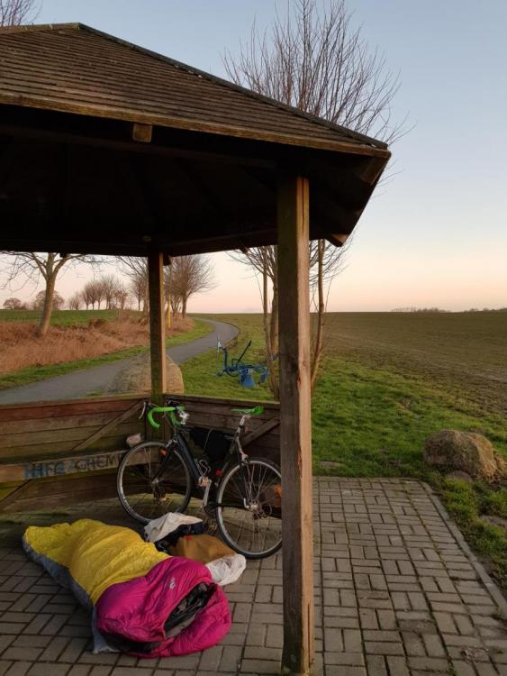 Rostock - Berlin mit dem Rad Ende Februar (25. - 27.02.) Am Freitag noch Sauwetter in Rostock, deshalb kein Abstecher in den Gespensterwald Nienhagen und nach Warnemünde. Nur kurz 20km raus aus Rostock zur ersten Unterkunft gefahren. Danach meist Kaiserwetter bei ca. 4° am Tag und Minusgraden bei klarem Himmel in der Nacht. Mit Irr- ... äh ... natürlich geplanten Umwegen waren es ca 250km in zwei Radtagen mit 2 Übernachtungen. edit: Bild 1 müsste eigentlich an dritter Stelle stehen.