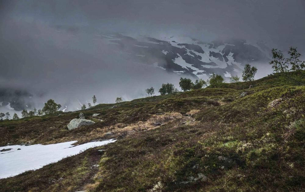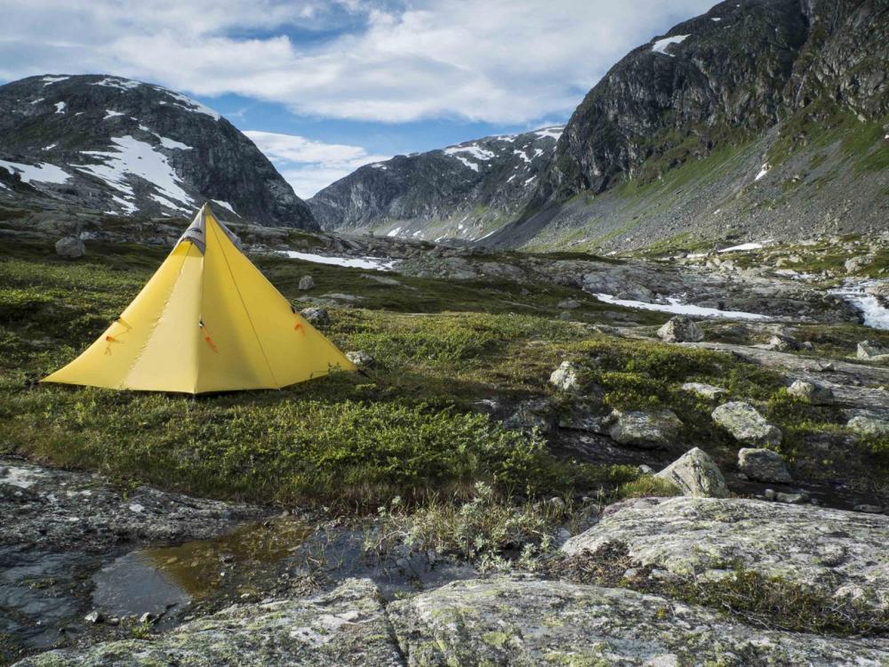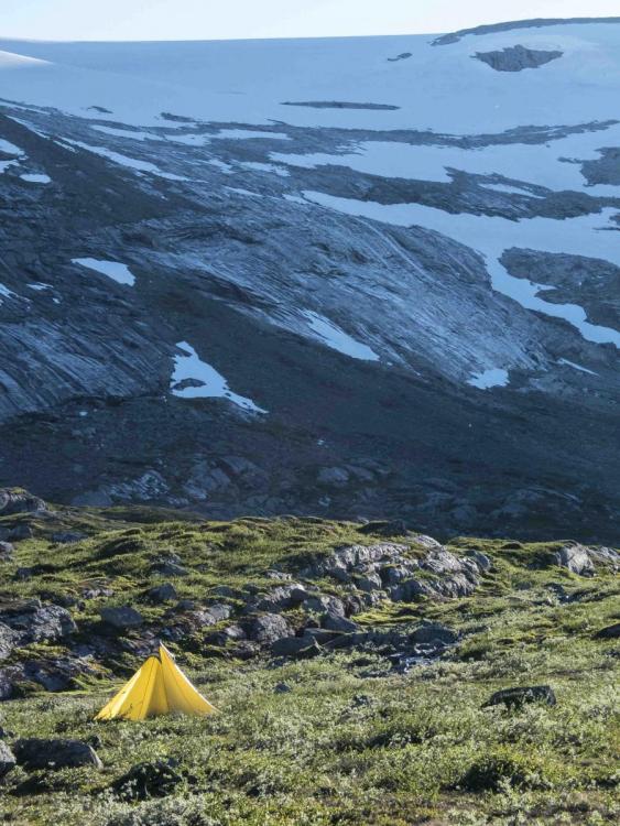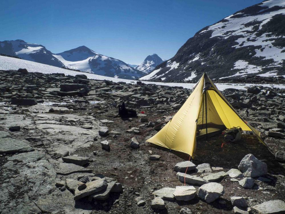 7. Hallo und vielen Dank für das Interesse an meinen Bildern! Da ich gerade im leider nicht "leichtem" Umzug stecke und auch relativ talentfrei bin was das Schreiben angeht, wird das mit dem Bericht eher nichts. Kurz zusammengefasst: Ich war mit Lotte, meiner treuen und schon etwas älteren Hundedame für 3 Wochen im August mit dem Auto in Norwegen. Die erste Tour führte oberhalb von Roldal vom Valdal in die südliche Hardanger Vidda. Überraschend viel Schnee und Mücken machten uns die ersten 2 Tage ganz schön zu schaffen und ich fing mir erstmal eine ordentliche Männergrippe ein Schon Blöd gleich am Anfang, besonders weil ich seitdem ich auf den Hund gekommen eigentlich von derartigen Infekten verschont blieb. Also hab ich schweren Herzens die Tour abgebrochen und bin zu dem schön gelegen Campingplatz nach Roldal gefahren. Die Erkältung dauerte eine Woche, in der ich nur einige Auflüge in der Umgebung unternahm . Danach fuhr ich Richtung Breheimen ans obere Ende des Jostedalsbreen und wanderte in das wunderschöne Mysobyttdalen für eine 3 Tagestour hinein. Das Wetter war bestens und die Sonne schien die ganze Zeit, nur die Mücken waren auch oberhalb der Baumgrenze recht anstrengend. Über Lotte schwebte ständig ein ganzer Schwarm. Danach ging es weiter nach Jotunheimen, dort umwanderten wir gemütlich innerhalb von drei Tagen die Gebirgsgruppe der Kyrkja. Wieder bei strahlendem Sonnenschein und wunderschönen Ausblicken. In der dritten Nacht erwischte uns ein kräftiger Föhnsturm. Bis dahin hielt ich mein geliebtes shangri la Mid mit selbst gebauter Karbonstange für absolut sturmfest, aber die starken Böe drückten trotz Sturmabspannung die Zeltbahn sackartig nach Innen. So habe ich mich die halbe Nacht in Regenklamotten sitzend dagegengestemmt. Deshalb werde ich mir wohl demnächst noch mal zusätzliche Abspannpunkte annähen. Am nächsten Tag war das Wetter das erstemal schlecht, bzw. für Norwegen normal Zwischen den Touren habe ich immer wieder wunderschöne Plätze zum Übernachten gefunden. Ich freue mich schon auf die nächste Norwegen Reise.