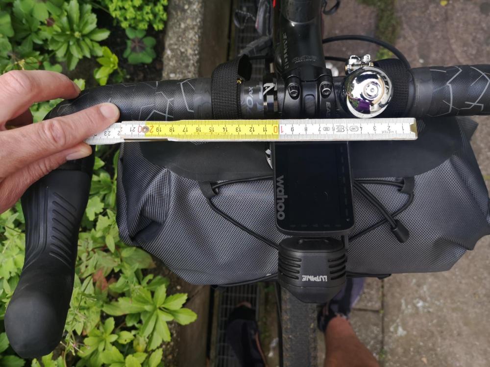 Hallo zusammen! Also bei mir am Cockpit sieht das etwa so aus, bei einem 44er Lenker sollte ein max. 14cm Außen Abstand der Gurte bei den meisten Lenker ganz gut passen. Die Maße vom BeiPack fände ich für den Alltag genau richtig. Ich würde gerne mal testen wie sich Woven dcf im Alltag schlägt und könnte gerne Prototypen im Täglichen Einsatz testen. VG