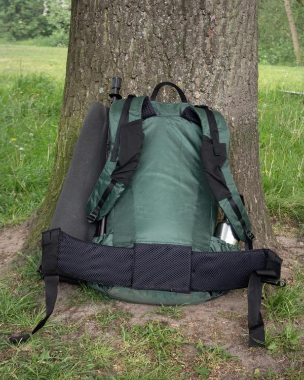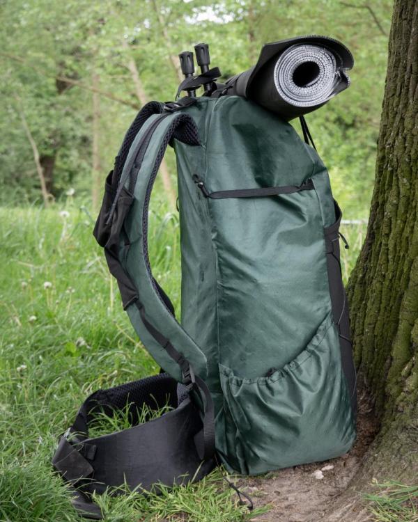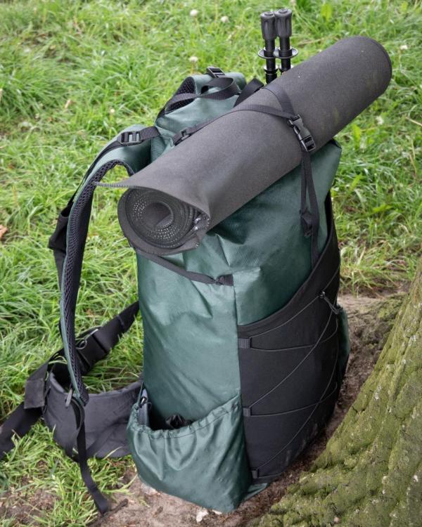 Im September geht's mit meiner Freundin hoch auf die Isle of Skye, um die Insel direkt wieder zu Fuß hinunterzuwandern. Wir sammeln seit einer Weile ihre Ausrüstung zusammen, aber eins fehlte noch: der Rucksack. Den bekommt sie nun zum Geburtstag, in ihrer Lieblingsfarbe und im schicken Atom-Packs-Design. Nach einigen kleineren Rucksäcken hatte ich ausreichend Erfahrung für das größere Projekt, nur Frame und Hüftgurt stellten mich vor eine Herausforderung. Zum Glück gab es hier im Forum ordentlich Inspiration und Anleitung: Danke @Mia im Zelt und @mochilero für eure Fäden. Außerdem hatte ich meinen Atom Packs "The Mo" 50L zur Hand, um mich an Maßen und Konstruktion zu orientieren. Der Plan: Ein 40-Liter-Rucksack mit rückenfreundlichem Tragesystem im Atom-Packs-Design. Maße: Bei etwa 27 cm x 17 cm x 80 cm kommt der Korpus auf rund 37 Liter, geschlossen vielleicht 30. Wenn wir wie Atom Packs mit je 2,5 Litern für die Seitentaschen und 5 Litern für die Fronttasche rechnen, erreichen wir die 40 Liter. Die Vorderseite ist wie bei Atom Packs ein gleichschenkliges Trapez, das nach oben hin etwas breiter wird. Das sollte die Befüllung etwas vereinfachen (und sieht schick aus!). Frame: Ich habe mich am Carbon-Frame vom Atom+ orientiert. Genau wie in Mochileros Beispiel werden die zwei Stäbe durch einen Delrinstab verbunden. Etwas Padding liefert 10 mm EVA50. Abnehmbarer Hüftgurt: Inspiriert von Mia im Zelt und ihrem konischen Hüftgurt. Wie im dort erwähnten Reddit-Post von @marieke333 sind die Flossen am Ende etwas eingeschnitten, um die seitliche Neigung der oberen Hälfte zu unterstützen. Padding durch 10 mm EVA50, Stabilität durch 1 mm Polyethylen-Platte. Schultergurte: Ich habe die Gurte von meinem Mo komplett kopiert. Form, Länge, Design der Taschen und Load-Lifter. Materialien: EPX200 Green Mountain für den Korpus, Seitentaschen und Außenseiten der Schultergurte; EPX200 Black Reste für die Außenseite des Hüftgurts 3D-Mesh für die Innenseite der Hüft- und Schultergurte 10 mm EVA50 als Padding für Rücken und Hüftgurt 2 x 4 mm EVA50 als Padding für die Schultergurte Strech-Jersey-Reste für Frontasche und Schultergurttaschen 1 mm Polyethylen-Platte für den Hüftgurt 2 Carbonrohre von 8 mm x 6 mm x 330 mm und Delrin-Rundstab von 6 mm für den Frame Silnylon-Reste für die Frame-Tasche Weiterer Kleinkram von Extremtextil wie Gurtband, Leiterschallen, elastisches Gurtband, Mini-Tankas, Häkchen- und Flauschband und Blitzverschlüsse. Gewicht: 755 g inklusive Frame & Hüftgurt. Ein vergleichbarer Mo im Atom Packs Custom-Builder wiegt 865 g, hat allerdings auch einen schwereren Rahmen mit Plastikplatte und Alustange. Ein vergleichbarer Atom+ wieg 674 g, dafür haben wir den besseren Hüftgurt! Was würde ich nächstes Mal anders machen? Leider habe ich die Schultergurt-Taschen jeweils an der falschen Seite des Gurts eingenäht, sodass eine eingesteckte Wasserflasche z.B. direkt ins Gesicht piekst und ich keinen Brustgurt anbringen kann. Da werde nochmal ran müssen. Ich hatte leider keinen Delrin-Rundstab von 5 mm Durchmesser gefunden, weshalb ich die Enden etwas abraspeln musste. Das war schon etwas nervig, aber zumindest können sie jetzt nicht tiefer als gewünscht in die Carbonrohre rücken. Das Silnylon für die Frame-Tasche war vielleicht eine Stufe zu leicht gewählt. Durch die Spannung des Rahmens und den Löchern durch die Nadel hat es sich oben bereits etwas herausgerissen. Mein Fazit: Insgesamt bin ich sehr zufrieden mit dem Ergebnis und er wurde auch schon erfolgreich anprobiert! Nächste Woche steht eine Probewanderung an ... am liebsten möchte ich mir jetzt direkt auch einen eigenen nähen! An meinem Mo stören mich die extra Gurtbänder für den Verschluss, die immer herumflattern und der feste Hüftgurt. Ohne das beides lässt sich so ein Rucksack viel besser auch im Alltag für Einkäufe und Reisen einsetzen. Naja, vielleicht folgt hier bald ein Update Vielleicht findet jemand das Projekt ja ganz spannend. Fragen beantworte ich gern!