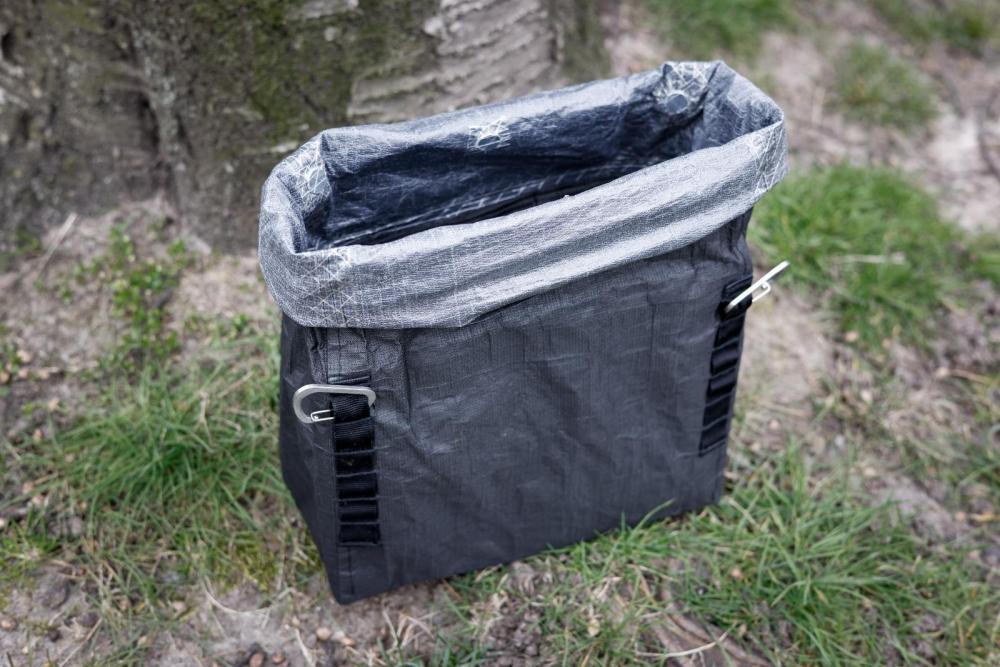 Zeit für Fotos! Zunächst entschuldigt: Zum Zeitpunkt der Fotos hatte ich die Befestigung mit der Schnalle noch nicht final festgelegt. Daher fehlt sie noch bei den meisten Fotos. So sieht das ganze in Verwendung aus: Geschlossene Tasche: Offene Tasche: Offene Tasche, Rolltop nach außen gerollt: Offene Tasche, innen: Schnellverschluss mit Magneten: Trenner mit Klett: Kasten wird mit Klett fixiert: Geschlossen aus meiner Perspektive: Die neue Schnallen-Befestigung: -