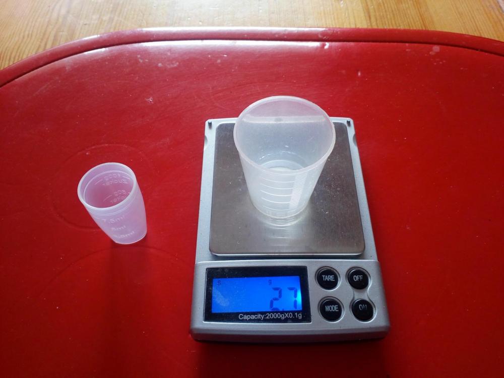 OT: Diese KH - Dosierbecher sind wirklich gut, es gibt auch einen fest schließenden Deckel dazu: Ohne ist natürlich leichter, aber nicht so stabil zu verpacken: Wer es noch leichter (dabei auch noch stabiler!) möchte und etwas Zeit zum Dosieren erübrigen kann - auf Flüssigsüßstoffflaschen (was für ein Wort) sind so kleine Dosierbecher , die 2'5-5-7,5 ml Prägungen haben. Das ist dann richtig genau... Nur mal so als Anregungen