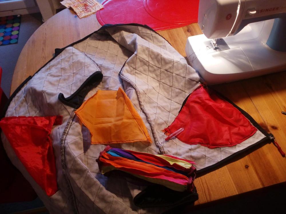 Da ich ja mein "in-skin-weight" reduziert hab,passt die Weste wieder! Nur störte mich, dass die kwine Seitentaschen hatte - da musste Abhilfe geschaffen werden: Reste von Einkaufstaschenstoff und ein "Schlamper" von Tiger, der nur aus Reißverschlüssen besteht (der wurde kannibalisiert) Erste Tasche ging schonmal gut, mutig weiter.... Und fertig! Das Gewicht ist allerdings jetztum 9g auf exorbitante 165 g angestiegen... Aber das ist's wert! siehtauch viel besser aus jetzt, finde ich. Nicht mehr so nach Rest aus'm Verschenkmarkt. Und innen guckt ja keiner Naja, ok, ihr jetzt... -