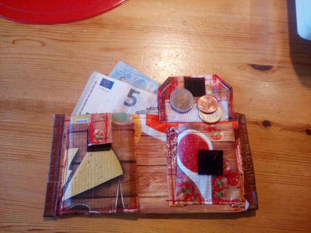Meine Geldbörse myog ist jetzt doch arg zerfleddert, und da ich soeine schöne Einkaufstasche bei meinem Supermarkt gefunden hatte, hab ich den Gewebestoff gleich genutzt. Vorne re. die alte Börse...wurd' Zeit! Hier die neue, außen... ...innen, mit Kleingeld- und Scheckkartenfach... Und das Wichtigste: Gewicht Ok, ultraleicht geht anders, aber dafür ist der Stoff auch stabiler (Die alte Borse hat nur 12 g gewogen) Ist zumindest low budget. -