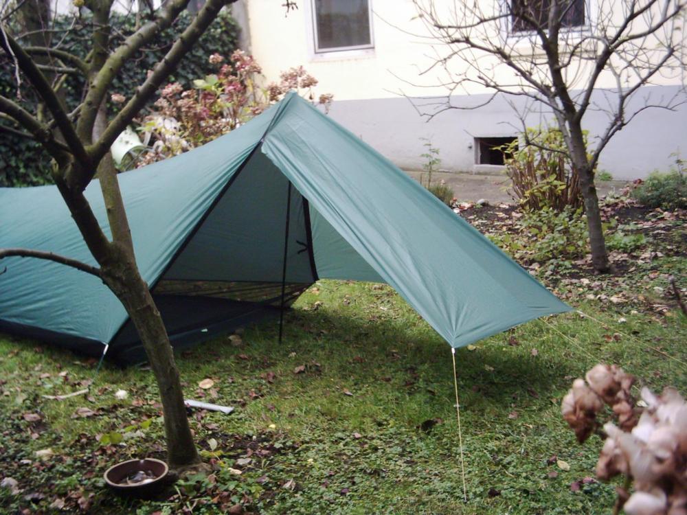 ... und ich könnte ein von @Barbarix gebautes Tarp/Tent anbieten, Anlehnung an SMD-Tarp, aber "ziemlich für Wintereinsätze modifiziert: - vollflächig eingenähter Boden - per Reißverschluss abnehmbare Apside / Beak - Pro Seite 2 Lifter, die den Innenraum noch einmal deutlich vergrößern Die Verarbeitung ist entsprechend einem Erstlingswerk, also eher rustikal. [...] bei mir liegt es seit ca. 5 Jahren unbenutzt auf dem Dachboden. Wäre schön, wenn es wieder artgerechte Verwendung findet" Eine Gummi-Leinenhalterung ist gerissen, leicht zu ersetzen. Preis: angemessene Spende an den Laufburschen, Versand übernehme ich!
