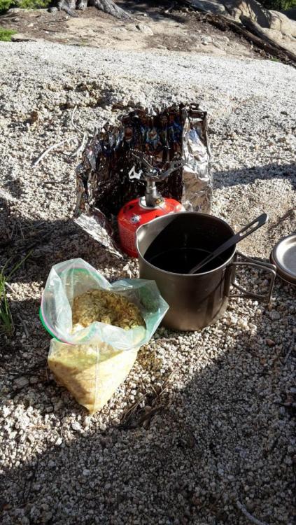 @Wallfahrer Hey, nein, ich habe nichts vorbereitet. Zolltechnisch darf man keine Nahrungsmittel einführen und ich bin eher vom Typus faul und unorganisiert Ich habe zu 90% nur abends gekocht und meistens -wenn verfügbar- Couscous. Den habe ich mit Parmesan, Olivenöl, Chili und Knoblauch gewürzt. Das schmeckt mir immernoch! Wenn es keinen Couscous gab habe ich Ramen Noodles mit Chili und Erdnussbutter gegessen (asiatische Tütensuppe). Für beide "Gerichte" reicht es kochendes Wasser aufzugießen. Zum Frühstück habe ich fast immer 4 Poptarts (Toasterpasteten?!) und eine Clif-Bar (Müsliriegel) unterwegs gegessen: Manchmal, an besonderen Tagen, habe ich zum Frühstück Pause gemacht und mir warmes Oatmeal (Porridge) mit Kaffee gegönnt! Ach ich wär so gerne wieder auf dem Trail... wehmütige Grüße, Jan