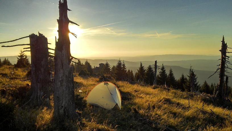 Will euch ein paar Bilder von meiner Tour vom 27.09.2014 an der West-Seite des Brockens im Harz nicht vorenthalten, da es wirklich eine der schönsten Touren im Harz gewesen ist. Ihr müsst dazu wissen (wer es nicht bereits tut), dass es im Harz so gut wie NIE windstill ist, und der Wind dann meist von Westen kommt. Der Samstag, den ich dort erwischte war einer der GANZ wenigen Tagen im Jahr, an denen es nahezu windstill war. Anderenfalls wäre der zu sehende Nächtigungs-Platz nicht denkbar gewesen. Ich war auf ca. 950hm vom Brocken aus gesehen Richtung Torfhaus. Wer die Klippe erkennt möge ich bitten Sie nicht beim Namen zu nennen. Derjenige wird wissen warum. Ich musste bis dorthin über eine Stunde lang durchs Hochmoor watscheln. Jede Sekunde wachsam, dass ich nicht bis zum Knie tief fest-steckte. Da blieben die Socken selbst in Gore-Tex nicht trocken, da es von oben reinkroch. Aber irgendwann war auch das nicht mehr schlimm. Nach einer eher unfreiwilligen face2face Begegnung mit einem ausgewachsenem Hirsch, die für uns Beide wohl mit starken Herzklopfen, aber dennoch glimpflich endete, habe ich meine Socken auf der Klippe in die Sonne gehangen und die Aussicht genossen. Da die Schuhe und Socken während des Sonnenuntergangs noch lang nicht als trocken bezeichnet werden konnten, war ich "gezwungen" den genauen Schlafplatz "per blankem Pedes" zu erkunden. Barfuß durch die matschigen Moose und Gräser zu dackeln, die von Totholz übersät waren war eine solch enorme Schlüsselsituation und Erfahrung für mich, dessen Tragweite ich mir erst am nächsten Morgen klar wurde. Denn seit da an ging ich nur noch barfuß! Wieviel mehr man doch spürt, die Temperatur, warm kalt, Jedes kleine Steinchen. Viel mehr, welche Beschaffenheit der Boden hat. Und witzigerweise ist das Thema wasser / Nässe überhaupt nicht mehr vorhanden. Wenn man die Kälte erstmal überwunden hat ist es egal. Denn der Fuß ist eh in 4-6 Schritten danach wieder trocken. Natürlich machte mein verweichlichter Fuß noch lange kein unbeschwertes Gehen möglich. Aber das aufmerksame Ggehen empfand ich sehr angenehm. Einfach intensiver. Selbst mitten durch den Wald zu gehen bereitete mir sehr schnell keine Probleme mehr. Und das Ironische: das ganze war so lang angenehm bis ich wieder die von Menschen geschaffenen Wege benutzen MUSSTE. Schotter, Beton, Asphalt, Kopfstein. Alles Dreck. Sodass es mit Schuhen wieder angenehmer war. Aber was für eine Ironie. Mache mir seit dem wirklich viele Gedanken um das Thema und will dort dran bleiben. Auch um die nötige Hornhaut zu bilden... Naja, will das Thema auch nicht breit reden. Dazu gibt es ja sicherlich andere Beiträge. Jedenfalls war es einer genau dieser Abende an denen man sonst denkt "wäre ich mal da gewesen". Und dieses Mal war man es. Kein Mensch weit und breit. Alles ruhig. Eine Klippe für sich. Eine warme Suppe in der Hand. Und ein Sonnenuntergang, als würde er einem nur ganz allein gehören. Einfach schön.