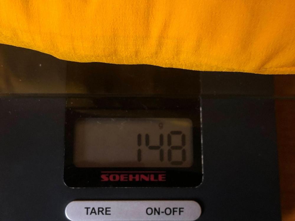 den ich übrigens suboptimal finde (wenn ich 'nen Knoten ins Band mache, zieht sich das bei mir immer fest). Ich ziehe da demnächst elastisches Shock-Cord durch, verstellbar mit 'nem Tanka ... da wechsel ich auch das Band und bringe je einen Tanka zum schnellen Justieren an. In kühlen Nächten dann die 7D Windhose noch drüber! 👌