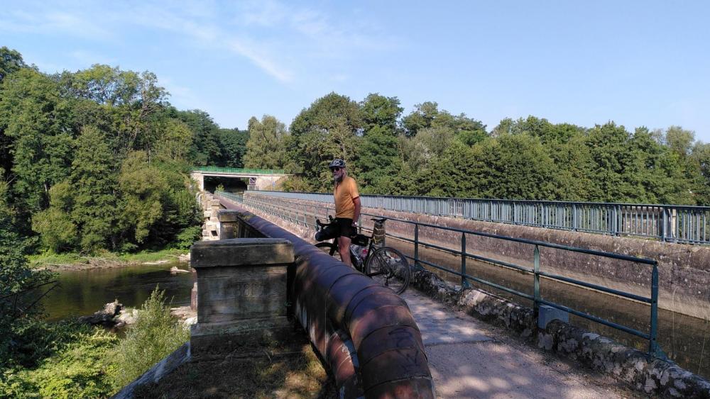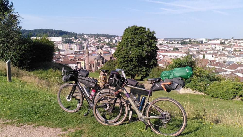 Nach Impressionen von Touren möchte ich für unsere dreitägige Bikepacking-Tour über die Vogesen auch mal einen kleinen Reisebericht erstellen. Es ging von Strasbourg aus am Canal de la Bruche bis ins Breuschtal, dieses (gemütlich) hinauf bis Saales, über St. Dié ins Moseltal und von dort aus bis Nancy. Unser Basisgewicht lag dieses mal fast UL-tauglich bei 5,5 kg pro Person. Da ich lieber am Laptop schreibe, die Bilder aber noch auf dem Handy sind, kommt hier erst der Bericht und anschließend die Bilder. 1. Tag: Strasbourg - St. Dié, 100 km Nach Strasbourg ist es eigentlich nicht weit, aber da wir die Strecke schon zigmal gefahren sind, ging es per Nahverkehrszug bis zum Hauptbahnhof, von da aus ist man schnell am stillgelegten Canal de la Bruche, an dem eine der zahlreichen piste cycable Frankreichs verläuft. Hier waren wir auch schon öfters unterwegs, in beide Richtungen, aber die Strecke ist immer wieder schön. Wir hatten uns Zeit gelassen und waren erst kurz nach 11 am Bahnhof angekommen, der Zug war äußerst voll, so dauerte es einige Zeit, bis wir wirklich in Richtung Kanal rollen konnten. Am Kanal selbst war wenig los, der Vorteil von unter der Woche unterwegs sein. Am Wochenende konkurrieren dort Familien mit Rennradlern. Am hübschen Örtchen Dachstein vorbei, den Dompeter ließen wir diesmal rechts liegen, Molsheim ebenso - aber anschließend war für mich Neuland, im Breuschtal war ich noch nie. Mutzig ist mindestens so putzig wie sein Name (auch, wenn ich mich natürlich nicht entblöden konnte, einen entsprechenden Kalauer mit einem sch- davor rauszuhauen, bevor mein Mann das tun konnte, das ist bei uns ein kleiner Wettbewerb), aber im Gegensatz zu den berühmten Tourikollegen überhaupt nicht überlaufen. In der Boulangerie Schumacher am Marktplatz wurde mit tarte des quetsches und café au lait für Energienachschub gesorgt, dann gaben Berge rechts und links bekannt, dass wir im richtigen Tal angekommen waren. Noch ging es aber lange nur gelegentlich rauf. Im unteren Breuschtal wird der Radweg oft noch seperat geführt, es fährt sich sehr angenehm, vorbei an Weiden, aber auch vielen Sägewerken, teilweise beeindruckend groß. In Fouday teilte uns, nachdem wir schon an der Kirche vorbegefahren waren, ein altes Schild mit, dass dort Pastor Oberlin, Reformpädagoge und Pfarrer im 18. Jh, begraben läge, was uns beide überrascht hat, wir hätten sein Grab im nahen langjährigen Wirkungsort Waldersbach vermutet. Natürlich kehrten wir daraufhin um, kletterten zum Friedhof neben der Kirche (die selbst, wie so oft, natürlich zu war) und fanden tatsächlich, ohne weiteren Hinweis, das Grab. Andenkenpflege geht irgendwie anders ... aber jetzt isses wenigstens als Komoot-Highlight angelegt. Nach Fouday war Schluss mit dem Radweg, aber der Verkehr war gut erträglich und es gab nur wenige Idioten, die ohne Seitenabstand überholten. Wir wollten eigentlich noch bis Saales auf den dortigen Campingplatz, aber als wir dort gegen 18 Uhr eintrafen, war der geschlossen. Wir also weiter, da war doch noch ein Hinweisschild zu einem Hotel, vor dem Gebäude auch ein hoffnungsvolles "ouvert", auf dem Parkplatz davor auch zwei Motorräder - aber beim genaueren Blick sah die Bude doch ziemlich verlassen aus, Gras vor der verschlossenen Eingangstür und von den Motorrädern hatte eines einen verrupften Sitz und das andere zwei Platten. Und da auch sonst das Kaff oben auf dem gleichnamigen Col (556 m) noch nicht einmal über Bürgersteige zum Hochklappen verfügte und einfach nur gottserbärmlich verlassen wirkte, beschlossen wir, noch die 22 km bis St. Dié dranzuhängen. Erst eine ideale Abfahrt, bei der noch nicht einmal mein Mann bremsen musste, dann ausnahmsweise, weil man dort hervorragend schnell fahren konnte und die Straße auch breit genug war für ungefährliche Überholmanöver, auf der N159 als Gravelexpress, auf diese Weise waren wir eine dreiviertel Stunde später in der Stadt. Der dort angezeigte Campingplatz war nur noch ein Wohnmobilstellplatz ohne Sanitäranlagen, also halt Hotel, nach etwas Rumkurven fanden wir auch etwas passendes (Ibis und ähnliche Ketten versuchen wir, nach Möglichkeit zu vermeiden). Eine Brasserie in der Nähe stillte den Hunger. 2. Tag: St. Dié - Epinal, 68 km Ohne viel über die Stadt zu wissen, hatte ich mir St. Dié immer schon hässlich vorgestellt und die Einfahrt am Abend zuvor hatte dieses Vorurteil auch bestätigt, die Nacht dann allerdings noch voll draufgesetzt - irgendwann beschlossen wir, dass wir versehentlich in einer absurden Theatervorstellung gelandet waren, die die ganze Nacht andauerte. Irgendwie brüllte immer irgendjemand draußen rum. Höhepunkt war dann eine anderthalbstündige "Unterhaltung" ab 4:30 zwischen "Nicole" und ihrem mutmaßlichen Ex. Es begann mit gefühlten dreissig Minuten, in denen er immer nur "Nicole!" brüllte, irgendwann kam dann die Antwort und von da an hatte Nicole das Wort, bzw. den Brüll, er kam deutlich seltener zu Wort, brüllte aber gelegentlich etwas von einem Daniel. Nicoles neuer Lover? Der gemeinsame Sohn? Wir überlegten und die passende Hintergrundstory dazu. Absurdes Theater? Vielleicht. Vielleicht auch einfach Training für die neue olympische Disziplin im Dauerbrüllen? Beide zeigten auch gegen sechs Uhr, als die Brüllerei langsam abebbte, keine größeren stimmlichen Einschränkungen. Chapeau! Beeindruckend war auch, dass sich ansonsten keiner für diese Szene interessierte. Kein "ta gueule" oder sonstige Reaktionen - war die Bevölkerung schlicht und ergreifend daran gewöhnt? Wenigstens gab es genügend Kaffee am nächsten Morgen zum Frühstück und unsere Räder hatten die Nacht in der Bar (gab sonst keinen Abstellplatz) gut überstanden. Wir fuhren noch kurz ins Zentrum, bewunderten die Nachkriegsarchitektur der Einkaufsstraße und eine schon ziemlich runtergekommene, von Stararchtitekten Le Corbusier entworfene Fabrik. An dem kleinen Flüsschen Taintrué entlang ging es üb