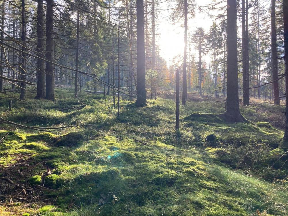 Etwas spät - aber beim Fotos sichten bin ich über diese herrliche Zweitages-Tour gestolpert, die ich Mitte November gemacht habe. Sie war so schön dass ich sie euch gerne weiterempfehlen möchte; zumindest den ersten Teil. Das Wetter war eher spätsommerlich, gigantisch. Nachts Frost, aber tagsüber T-Shirt Wetter. Meine bislang einzige Tour auf (zumindest teilweise) deutschem Boden: Von Bayerisch Eisenstein direkt auf dem Grenzsteig hoch zum Zwercheck (tsch. Svaroh), und von dort auf dem Kammweg zum Großen Osser (Ostry), dann auf der tschechischen Seite absteigen, ich habe an einer Schutzhütte übernachtet und bin über den schwarzen See (Černé jezero) und den Teufelssee (Čertovo jezero) nach Železná Ruda zurück (da ich kein früher Vogel bin, habe ich vorher in Železná Ruda auf dem Campingplatz übernachtet um morgens Anreisezeit zu sparen. Der hat das ganze Jahr über geöffnet). Der Grenzsteig ist bei Mapy.cz als Weg gekennzeichnet. Manchmal war es ein Trampelpfad, manchmal musste man raten. An einem Teilstück war er so sumpfig, dass ich lieber barfuß weitergelaufen bin. Weiches Moos, und Wasser das so schön zwischen den Zehen hochquillt … Ab dem finalen Aufstieg zum Svaroh war ich auf einem offiziellen Weg. Der Ausblick seit dem Gipfel den gesamten Kammweg entlang war gigantisch, sowohl zur tschechischen als auch zur deutschen Seite. Ich habe ewig gebraucht, weil ich auf jeden kleinen Felsen klettern und jeden Kiesel fotografieren musste… Deshalb habe ich den Osser auch erst gegen Sonnenuntergang erreicht. Das Gestein um den Osser hat einen hohen Glimmeranteil; im Sonnenuntergang kommt das echt gut zur Geltung. (Blick zurück - über diesen Kammweg kam ich her) (Gipfelkreuz des großen Osser; im Hintergrund sieht man auch den kleinen) Bedauerlicherweise war auf der Homepage nicht vermerkt dass die Gasthütte für die Wintersaison geschlossen hat; also bin ich hungrig und ein bisschen grumpy auf der tschechischen Seite abgestiegen und habe an der letzten Schutzhütte vor der Zone I des Nationalparks mein Zelt aufgeschlagen. Zum Trost am nächsten Morgen Frühstück mit Aussicht. Der Rückweg über die tschechische Seite entlang der zwei Seen war jetzt im November leider nicht so spektakulär wie erhofft, obwohl gerade der Černé jezero sehr schön sein sollte. Vielleicht im Frühjahr besser. Hier sind eher Laubwälder, die im Spätherbst halt braun sind. Ist natürlich auch etwas unfair, den Pfad durchs Tal mit dem Kammweg zu vergleichen... Zwischen den beiden Seen muss man dann auch noch einen supersteilen schlammigen Forstweg hochkraxeln - das wäre sicher ein Spaß für den 4x4, zu Fuß fand ich's dann ein wenig nervig... Alles in allem war ich froh, dass der Rückweg nur kurz war, so dass ich Mittags schon zurück an meinem Auto war und nach Hause fahren konnte. In diesem Fall war tatsächlich die deutsche Seite die schönere...