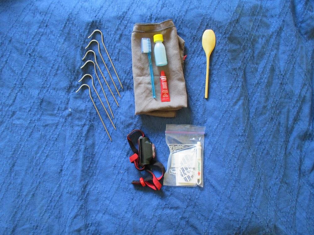 Am Sonntag geht es auf den Rennsteig, den ich in folgenden Etappen laufen will: Tag 1: Hörschel - Eisenach - ca. 15 km Tag 2: Eisenach - Finsterberg - ca. 30 km Tag 3: Schmiedfeld - Stützerbach - ca. 35 km Tag 4: Stützerbach - Siegmundsdorf - ca. 30 km Tag 5:Siegmundsdorf - Brennersgrün - ca. 40 km Tag 6: Brennersgrün - Blankenstein - ca. 20 km Am Abend des 3. Tages wird hoffentlich "quasinitro" zu mir stoßen, sodass wir die 2. Hälfte der Tour gemeinsam laufen. Zu dieser Jahreszeit sind 30 km/Tag sicher nicht so schrecklich viel, aber ich möchte mir dieses Mal Zeit lassen und auch zur Abwechslung mal ein paar Bilder machen, daher der entspannte Ansatz. Mal gucken, wie viel ich dann tatsächlich pro Tag laufe. An Ausrüstung nehme ich folgendes mit: (Skinout stimmt nicht ganz, die Schuhe sind noch nicht mit eingewogen und die Trekkingstöcke sind nur geliehen, daher sind sie auch noch nicht mit dabei.) Alles, was auf der rechten Seite der Stöcke liegt, kommt in den Rucksack, alles andere trage ich am Körper. Im Rucksack sind dann also: Schlafen: Isomatte Therm-A-Rest Short: 420 g Im Packsack: Cumulius Quilt 450: 698 g Cocon Travel Pillow: 72 Woolpower Sturmhaube: 44 g Packsack: ca. 20 g Socken: 72 g Shelter: Six Moon Design Oasis: 459 g MYOG Bodenplane: 152 g 6 Titanerdnägel: 33 g Wasser: Platypus 1 l: 86 g Nalgene 1 l: 22 g Kochen: Evernew Pasta Pot 1 l + MYOG Cozy + Putz"schwamm": 138g Bushbuddy Ultra: 142 g Trekkingshirt in (gelben) Drybag: 214 g blaue Wind-/Regenjacke: 127 g Linker Beutel: Handy, EC-Karte, Autoschlüssel, Personalausweiß, Bargeld, Versicherungskarte: 110 g Rechter Beutel: MYOG Löffel: 3 g Erste Hilfe (Blasen-/normale Pflaster, Zeckenzange): 17 g Kopfleuchte: 49 g etwas Öko-Seife: 20 g Zahnbürste + Zahncreme: 15 g 50x50 cm Microphaserhandtuch: 38 g Nicht im Bild: 2x Streihholzbriefchen: 6 g Der Rucksack selbst ist ein billig-Rucksack von Lidl: 457 g Essen: Jede Spalte ist immer ein Tag, Morgens gibt es immer Porridge 100 g Haferflocken 50 g gehackte Nüsse 30 g Folgemilch (für 300 ml) 10 g Kokosfett 20 g braunen Zucker Alles mit 300 ml Wasser aufkochen - ca. 1000 kcal Mittags immer Snacks 50 g Nussmischung 50 g Mr Tom - Erdnüsse in Caramell 50 g M&M Erdnuss 50 g Minisalami (seperat gepackt, da durch ihre Feuchtigkeit die Mr. Tom anweichen und die M&M sie grün/blau verfärben...) Abends gibt es Tag 1: Pestonudeln 90 g Gabelspaghetti 15 g frischer Basilikum 25 g Pinienkerne 25 g Paresan 1/2 Knoblauchzehe 40 ml Olivenöl Salz (ruhig viel, dann muss man fürs Nudelwasser kein Salz mitnehmen) Nudeln kochen nach dem abgießen mit Pesto vermischen. 920 kcal Tag 2: Tomatencouscous 90 g Couscous 50 g Nussmischung 20 g Parmesan 20 g Fett 1/2 Tüte Tomatensuppe etwas Salz 300 ml Salzwasser mit Fett und Suppenpulver aufkochen, Couscous + Nüsse + Parmesan dazugeben und im Cozy 5 min quellen lassen. 960 kcal Tag 3: Kartoffelbrei 70 g Kartoffelbrei (an das nur noch Wasser muss) 30 g Parmesan 30 g Kokosfett Salz + Pfeffer + Chilipulver 30 g Röstzwiebeln 30 g Tortillas Fett + Gewürze in 350 ml Wasser aufkochen, Kartoffelbrei + Parmesan dazugeben und quellen lassen und dann mit Röstzwiebeln + Tortillas bestreuen.950 kcal Tag 4: Thai Pad 1x A-One Nudelsulle (Shrimpgeschmack) 30 g Ernussbutter 30 g Kokosfett 25 g Instant Kokosmilch 15 g Soßenbinder 10 g Chili Soße 5 g Sojasoße Die Nudeln + Kokosmilch einzeln verpacken, als dem Nudel-Gewürzpäckchen und allen anderen Zutaten eine Paste rühren und verpacken. Vor Ort alles in einen Topf und mit 300 ml Wasser aufkochen und im Cozy quellen lassen, bis die Nudeln weich sind. 1150 kcal Tag 5: Tomatencouscous Insgesamt habe ich ca. 16.300 kcal dabei die inkl. der ganzen Verpackung ca. 3,4 kg wiegen. Ohne die Verpackungs sind es rechnerisch ca. 3,2 kg, sodass ich auf einen durchschnittlichen Nährwert von über 500 kcal/100 g komme. Frühstück gibt es am ersten Tag noch zu Hause, Abendessen auch, daher fehlen diese Mahlzeiten. Es ist eigentlich geplant, abends die Schutzhütten zu nutzen, aber da ich mir die Möglichkeit offen halten will, abseits der Hütte zu schlafen bzw. ausweichen zu können, wenn sie besetzt ist, kommt das Shelter mit. Des Weiteren KÖNNTE man natürlich Einkehr-Möglichkeiten vor Ort nutzen, um so das Gewicht zu reduzieren, aber ich möchte es autak versuchen, auch wenn mich quasinitro schon zu min. einem Stück Kuchen überredet hat. Mal schauen wie viele es dann werden... Bilder folgen dann in nächstes WE...