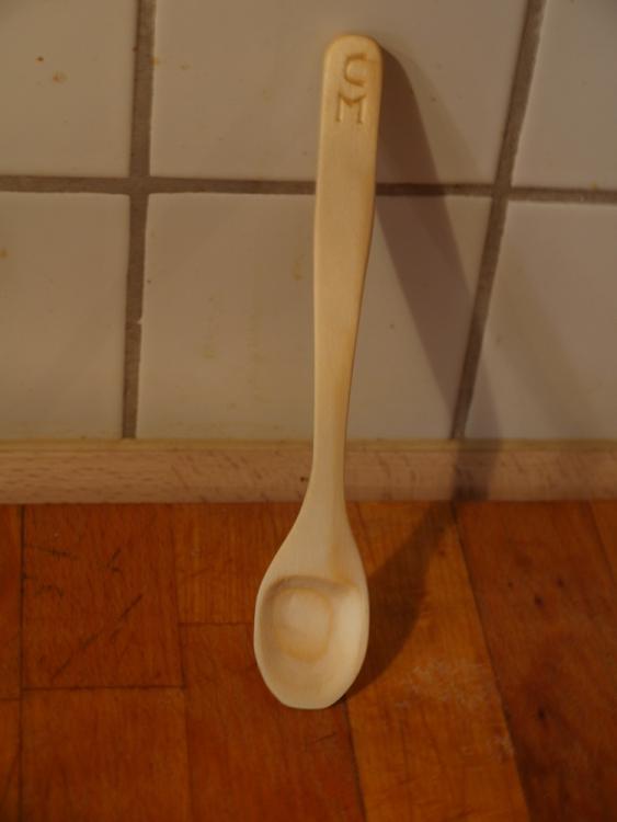 ... ich schnitze zur Zeit gern und habe heute mal einen neuen Griff ausprobiert. Es ist zwar im Griff "doppelt" so viel Material, dafür aber sehr viel dünner. Laut meiner Küchenwaage wiegt er 2 Gramm. Gedacht ist er bei seiner Größe als Kaffee-Löffel oder sowas. Da ich allerdings keinen Kaffee trinke, wird er wohl demnächst der thermischen Verwertung zugeführt Für MathiasC schnitze ich (wahrscheinlich morgen) noch einen nach seinen Vorgaben, wollt ihr den sehen oder nerve ich Euch mit so vielen Löffen? -