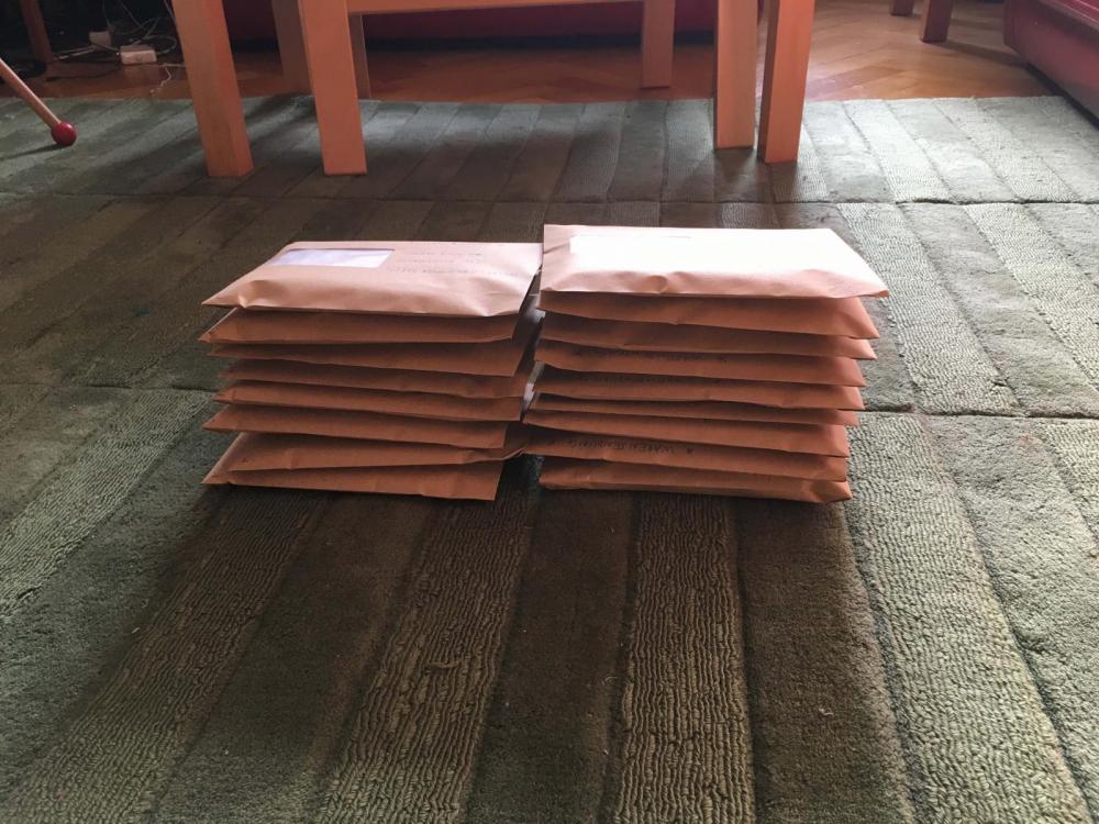 So, die ersten 17 Briefchen (Warensendungen) mit 35 Kissen sind fertig und gehen auf die Reise. Viel Spaß damit! Der Rest wird ab dem 25. verteilt. VG Peter -