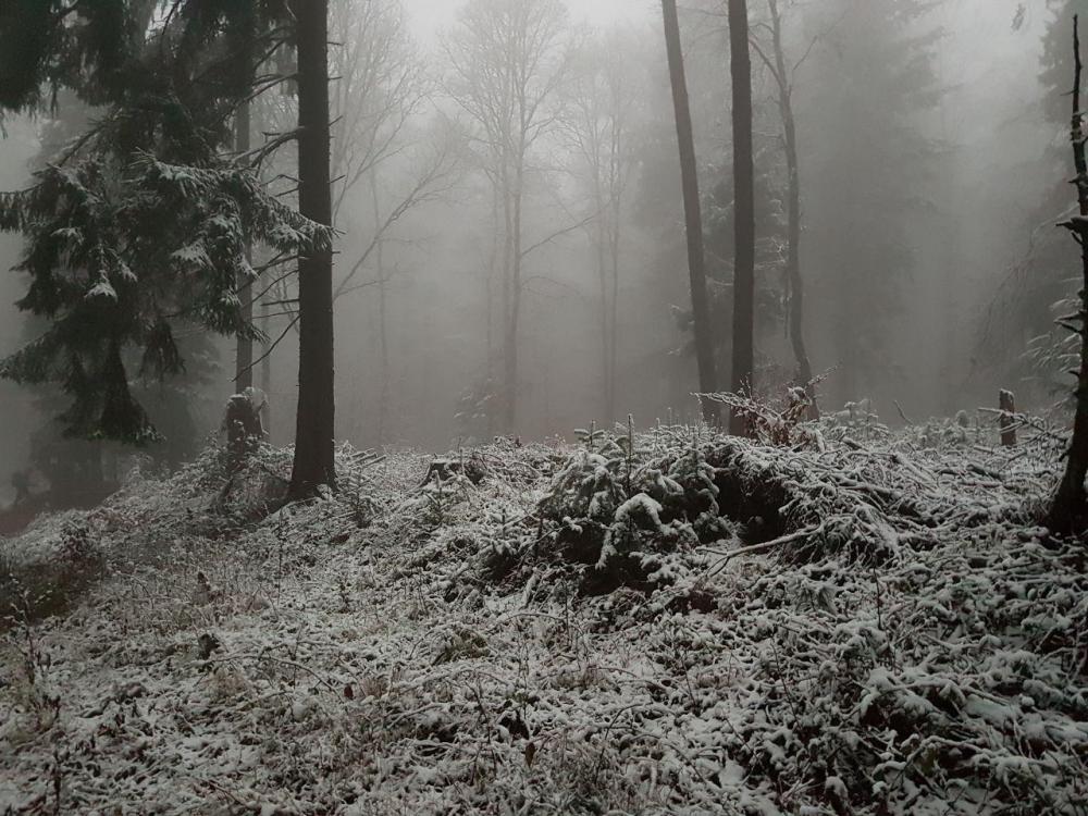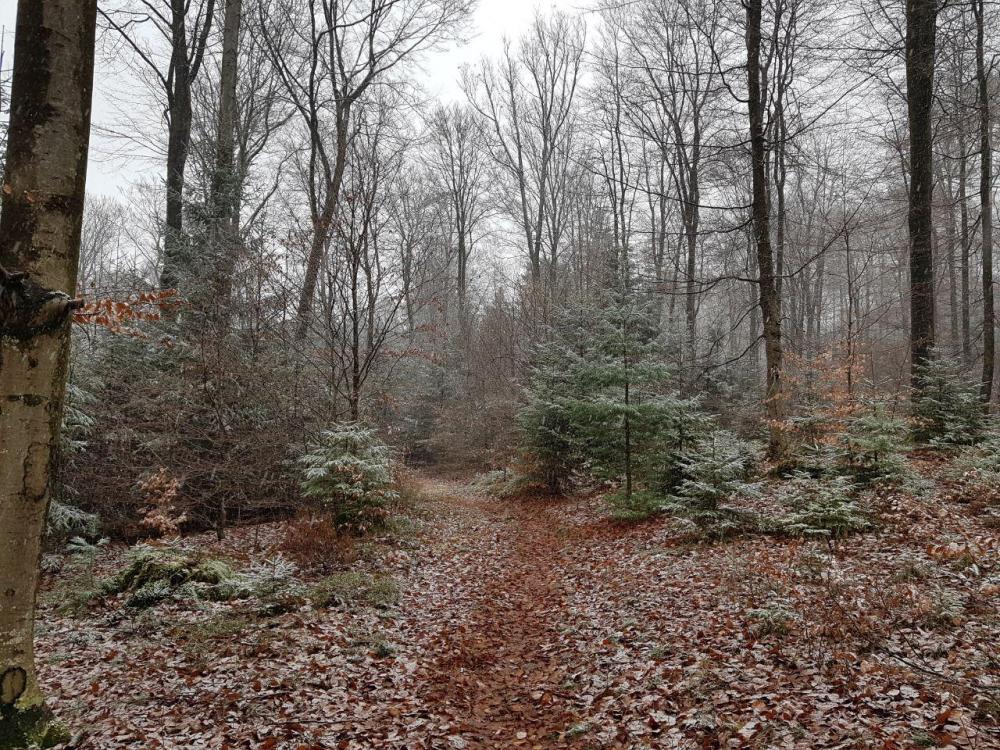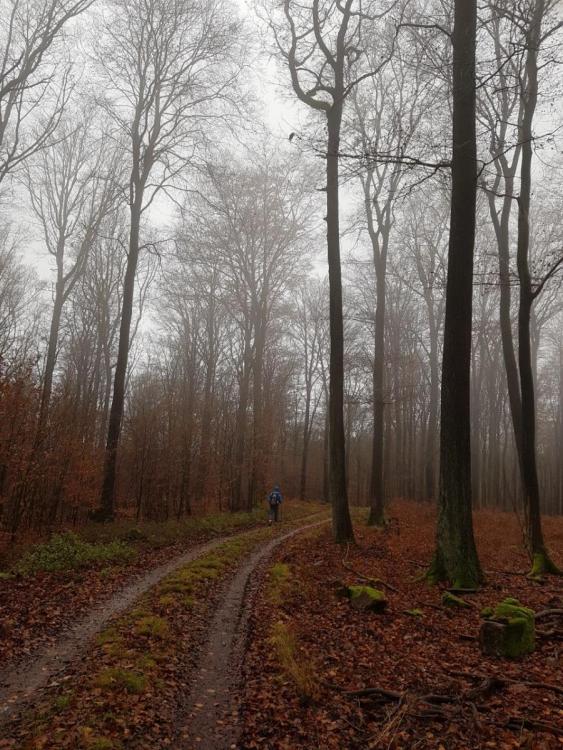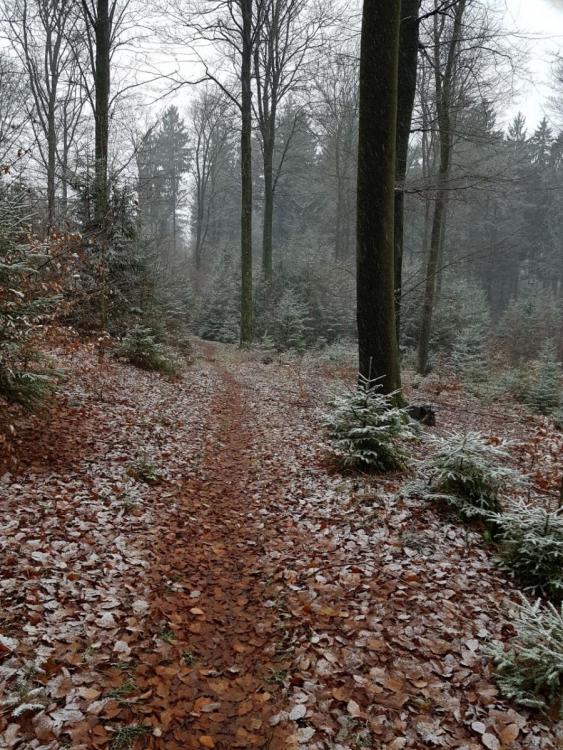 Hallo liebes Forum, nachdem eine Suche hier im Forum nichts ausgespuckt hat, dachte ich, ich sollte vielleicht kurz mal den Eselsweg vorstellen, den ein Mit-Forist und ich letzte Woche gegangen sind. Für einen richtigen Reise- oder Tourenbericht reicht meiner Meinung nach unser Tour-Erlebnis nicht aus, spannende oder spektakuläre Ereignisse gab es wenig. Der Eselsweg ist knapp 110 lang und verläuft in Nord-Süd-Richtung (oder natürlich auch umgekehrt) durch den gesamten Spessart. Startort war bei uns Schlüchtern in Hessen und wir sind in knapp 3 3/4 Tagen bis Miltenberg (oder offiziell Großheubach, aber da ist der Bahnanschluss schlechter) in Bayern gegangen. Da wir wegen den derzeit nicht so langen Tagen eher kürzere Tagesetappen gelaufen sind, würde ich behaupten, dass sich der Weg zu anderen Jahreszeiten, also Frühling bis Herbst, somit auch sehr gut als verlängerte Wochenendtour eignen würde. Der Weg zeichnet sich dadurch aus, dass er einer alten Handelsroute folgt. Diese historische Handelsroute (manchmal läuft man auf Kopfsteinpflaster durch den Wald) wollte die feuchten, morastig-sumpfigen und unsicheren Täler meiden und war somit als Kammweg angelegt. Das merkt man dem Weg heute auch noch an. Nachdem man erstmal die entsprechende Höhe erklommen hat, geht es die darauf folgenden Tage eher moderat auf und ab. Nur am letzten Tag ging es dann wieder ziemlich lange und steil bergab zum Kloster Engelberg. Aussichtspunkte sind aber dabei rar gesät, weil man die allermeiste Zeit im Wald ist. Aber dafür in einem schönen Mischwald, mit viel Buchen- und Eichenbeständen. Unterwegs findet man immer wieder Unterstands- und Schutzhütten, zum Teil extrem gut ausgebaut mit Fenstern und Betonboden, so dass mit guter Planung das Tarp eher selten ausgepackt werden muss. Rein theoretisch wäre auch eine Übernachtung in einem der Trekkingcamps bei Rothenbuch möglich, die hatten bei uns aber leider schon zu. Einkehren kann man auch relativ häufig, da mit dem allgemein zugänglichen Clubhaus des Golfclubs Spessart, der Gaststätte 'Waldhaus Zum Engländer' und dem 'Forsthaus Echterspfahl' drei Gaststätten direkt am Weg liegen. Theoretisch gäbe es auch noch andere Einkehrmöglichkeiten (Campingplatz Wiesbüttsee, hier könnte man natürlich auch übernachten, und Freizeitpark bei Bellings, die hatten beide bei uns aber Betriebsurlaub, und außerdem die Autobahnraststätte an der A3), die haben wir aber nicht benutzt. Als wir unterwegs waren, haben wir abseits der Autobahn, die wir ca. einen halben Tag recht gut gehört haben, wenig bis gar keinen Straßenlärm der nahen Hochstraße gehört. Das kann aber in der Motorradsaison natürlich ganz anders sein. Erstaunlicherweise haben wir aber recht viel Fluglärm von Passagiermaschinen gehört, muss wohl eine Einflugschneise (Frankfurt?) in der Nähe sein. War aber nicht extrem störend. Markiert ist der Weg exzellent. Fast immer ist an Kreuzungen der Weiterweg an einem Baum in Laufrichtung ein paar Meter weiter markiert, so dass man eigentlich ohne Karten oder so auskommt (Fast! Ein zwei Mal hätten wir uns dann doch beinahe verlaufen, wenn wir nicht auf LocusMap vertraut hätten). Die Wege sind dabei ziemlich gemischt. Es gibt längere Forststraßen-Abschnitte, aber auch längere Passagen auf kleinen Pfaden. Ziemlich typisch für deutsche Mittelgebirge, würde ich sagen. Alles in allem eine sehr schöne Wandergegend, in die ich bestimmt nochmal zurückkehren werde. Das Ganze ohne Schneeregen und Sturm, bei längeren Wandertagen ohne Stirnlampe abends wäre dann vielleicht etwas weniger abenteuerlich, aber dafür mit Laub an den Bäumen und vielleicht dem ein oder anderen Wanderer auf dem Weg (wir haben in den 4 Tagen vielleicht ein Dutzend Menschen im Wald getroffen) wirkt die Strecke bestimmt komplett anders. Ach ja, nachdem ich die Ausrüstungs-Kritiken nach irgendwelchen Thruhikes immer so klasse finde, jetzt mal nach unserem 'Thruhike' noch ein paar Sachen, die mir an meiner Ausrüstung aufgefallen sind (und weil man aus Fehlern anderer auch gut lernen kann): Das Trekkertent 2,80x1,80m Cuben Tarp hat sich in einer Nacht innerhalb eines ansonsten sehr offenen Pavillons in A-Form aufgestellt bewährt. Da ist Flat-Tarp natürlich klasse. Ansonsten kam es in einer Nacht bei mir an die Grenzen, das lag aber eher an den zu kurzen Nano-Heringen, die im weichen Waldboden zuerst nicht gut hielten. Im Grunde haben sie dann richtig tief in den Boden reingetreten zwar doch die Nacht durchgehalten, beim Kumpel waren die langen Nanos aber von Anfang an bombenfest, da werde ich also bald aufrüsten. Ansonsten blieb ich drunter trocken, auch wenn bei mir bei ähnlichen klimatischen Bedingungen vielleicht in Zukunft doch etwas mehr 'Zelt' (mein SMD Wild Oasis oder Lightheartgear Duo) mitkommen wird. Der Comforter L430 war bei fast jede Nacht geschätzt knapp am Gefrierpunkt mit ME Notfall-Bivy innen als VBL und BorahGear Bivy außen rum mit MH Ghost Whisperer und langer Schlafunterwäsche auf der Standard NeoAir fast schon zu warm. Ich hatte das Gefühl, dass da noch Reserven gewesen wären. Bei zwei von drei Nächten hatte ich ihn oben und seitlich offen, um mal schnell Wärme ableiten zu können. Aber ansonsten: Daumen hoch für den Comforter und das Schlafsetup! Wie immer war der LaBu Packraum ein Traum, ideale Größe für so eine Tour, saubequem, relativ wasserdicht, alles super. Esbit entwickelt sich zu meinem absoluten Lieblingsbrennstoff und die anderen Kocher werden es zunehmend schwerer haben, mal aus meiner Ausrüstungskiste rauszukommen. Kleidungstechnisch war ich obenrum eher zu kalt unterwegs mit einem langen T-Shirt, einer Windjacke, dem AsTucas-Kapuzenshirt aus KuFa und der Berghaus Vapourlight Hyper Smock. Dafür hat mich letzterer bei drei Tagen Dauerregen doch wieder überzeugt mit Wasserdichtigkeit und guter Atmungsaktivität. Beim nächsten Mal bei solchen Bedingungen würde ich aber statt dem AsTucas-Hoodie eher den Decathlo