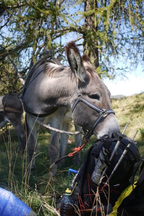 5 Tage Eseltrekking mit der Familie im Nationalpark Queyras in den französichen Alpen mit einer befreundeten Familie, daher die zwei Esel (jeder Esel darf max. 40 kg tragen). Nicht wirklich UL durch z. T. Nutzung der vorhandenen Campingausrüstung mit insgesamt knapp 27 kg BW für uns, d. h. 4 Personen, das Essen wog knapp 10 kg (wir haben nachgekauft) aber schön war es trotzdem!