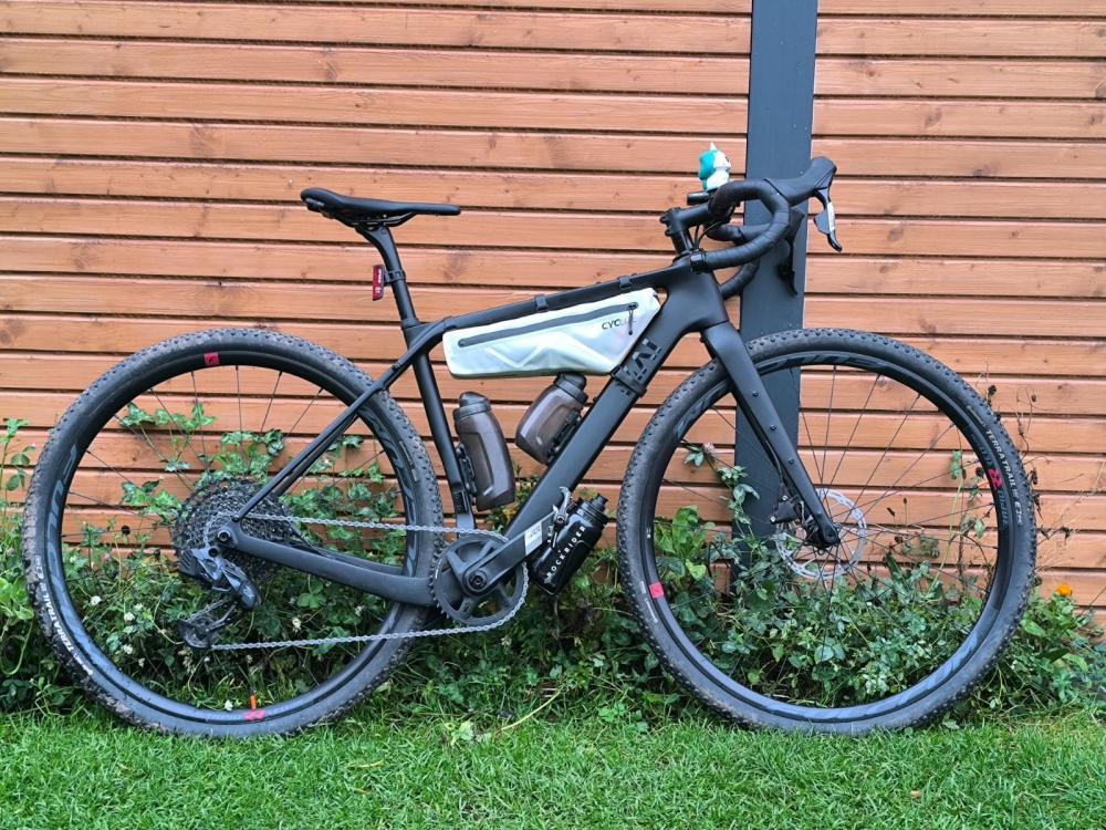 Mein Fahrrad: In der Rahmentasche hab ich je nach Jahreszeit und Wetter Minimalregenjacke, Windweste, Überschuhe, Überhandschuhe, Powerbank, Minimalschloss, Taschentücher, Müsliriegel, Elektrolyte. In der Flasche am Unterrohr habe ich Werkzeug und Ersatzschlauch. (Da hab ich tatsächlich letztens mit der Küchenwaage eroiert, ob einzelne Inbus Schlüssel, ein Multitool oder eine Miniratsche mit Bits weniger wiegen.) Ich hab noch die Arschrakete von Cyclite, da hatte ich beim letzten Trip (mit Hotel Übernachtung) Schlafkram und Wechselklamotten. Das Ding war noch nichtmal halb voll. Beim nächsten Trip muss dann noch ein Schlafsetup untergebracht werden, da sind Übernachtungen auf Campingplätzen geplant. Da werden wir uns abends dann auch ne Waschmaschine und ggf. Trockner gönnen, so dass wir auf Wechselklamotten verzichten können. Küche nehme ich nicht mit. Im Urlaub gönnen wir uns den Luxus, die lokalen Gastronomiebetriebe und Supermärkte zu unterstützen. Wenn ich irgendwann mal weniger pleite bin, wollte ich in nen leichteren Laufradsatz und Lenker in vestieren. -