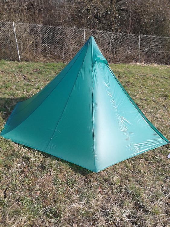 Hallo, nachdem ich vor einiger Zeit mit einem 3 x 3 Tarp aus Silnylon 55q/qm meine Nähkarriere begonnen habe, ging es jetzt mit einem Tipi aus Gleitschirmnylon 37g/qm weiter. Ich habe mich im Wesentlichen an die Anleitung von howtnted http://howtnted.blogspot.de/2014/07/myog-shangri-la-3-bauanleitung.html gehalten, einige Kleinigkeiten aber abgeändert, vielen Dank für die 1A Anleitung ! Im Großen und Ganzen bin ich mit dem ersten Versuch zufrieden, es gibt aber auch Verbesserungspotential. Was ich nächstes Mal ändern werde: anderes Material, werde wohl auch mal Chikara verwenden, hatte mich aufgrund des Preises noch nicht ran getraut RV in der Mitte des Einstiegs, da es sich einfacher nähen lässt kürzerer Stockschutz, ist zu üppig geraten andere Art die Spitze zu vernähen, weiß allerdings noch nicht wie Vergleich von Silnylon und Gleitschirmnylon: entgegen einiger Aussagen hier, bin ich nicht der Meinung, dass sich Gleitschirmnylon leichter verarbeiten lässt als Silnylon. Vorteil Gleitschirmnylon 37g/qm: billig leicht Vorteil Silnylon: verzeiht weniger genaues Arbeiten durch Dehnung eher kein CatCut notwendig Nähfehler können leichter korrigiert werden, da Löcher im Stoff wieder zusammengeschoben werden können, bei Gleitschirmnylon bleiben durch die PU-Beschichtung Löcher zurück, die abgedichtet werden müssen und sch... aussehen Stoff kann auch an sichtbaren Stellen mit Stecknadeln fixiert werden ohne dass Löcher zurückbleiben