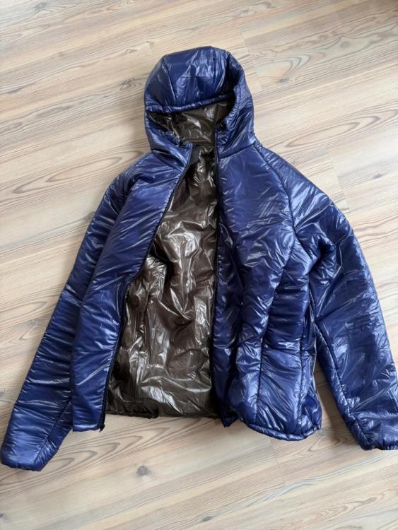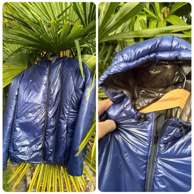 18. Jacke ist da und ich feier die jetzt schon. Wir von EE vorhergesagt, wiegt das Teil nur 241g und damit löst sie meine Decathlon Jacke (434g) ab. Farblich ist das äußere 7D dunkel blau. Wirkt manchmal schon fast schwarz, im Sonnenlicht geht es etwas ins Lila. Achja, hier sind die Ärmelbündchen einwandfrei. Gedauert hat das Ganze jetzt knapp vier Wochen. Preislich aber schon arg. EE hat von mir 210€ bekommen, aber Versand und Steuern haben den Preis um weitere 85€ hoch getrieben. Darüber darf man gar nicht nachdenken. Aber es ist Hobby! 😬🤪