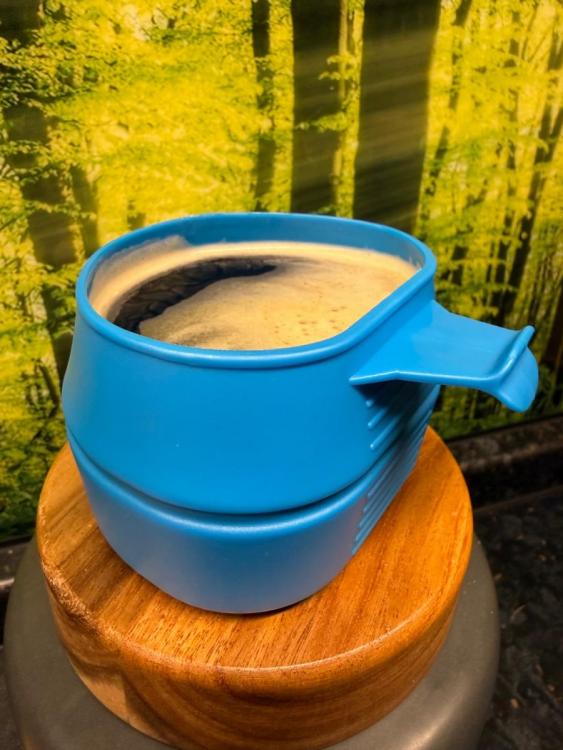10. Bei kurzen Touren benutze ich den selben 750ml Toaks, den ich zum „kochen“ benutze. In Verbindung mit Instantkaffee mal ganz ok. Für längere Touren wünsche ich mir doch was anderes und das darf (ich habe ordentlich an der restlichen Ausrüstung abgespeckt) auch minimal Mehrgeeicht bedeuten. Mir schwebt aktuell als Trinkgefäß die wildo Falttasse (24g) mit einem GSI Drip Filter (11g) vor. Jemand hier mit entsprechenden praktischen Erfahrungen?
