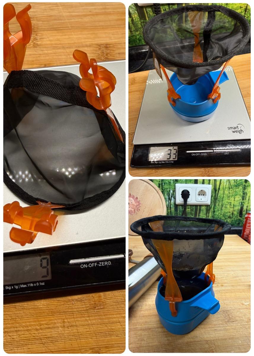 4. Achja, mit Filter ist es auch ganz entspannt. Insgesamt 33g…das ist es mir wert. Jetzt fehlt nur noch eine UL Möglichkeit, um Kaffeebohnen zu mahlen. 😬🤣