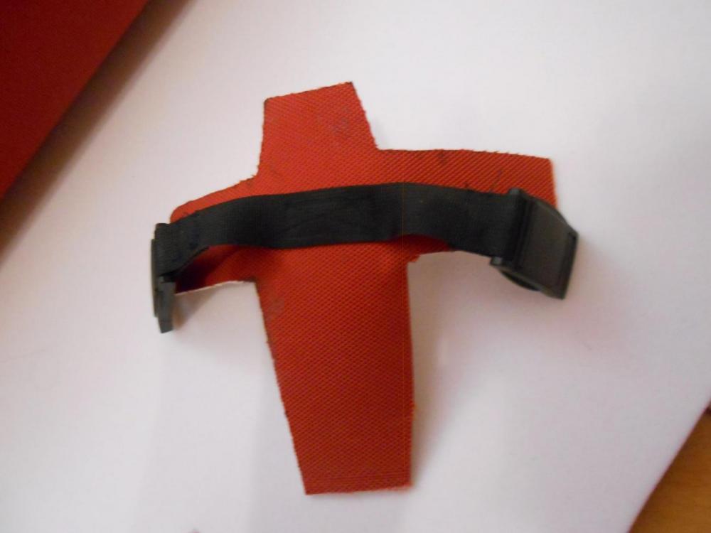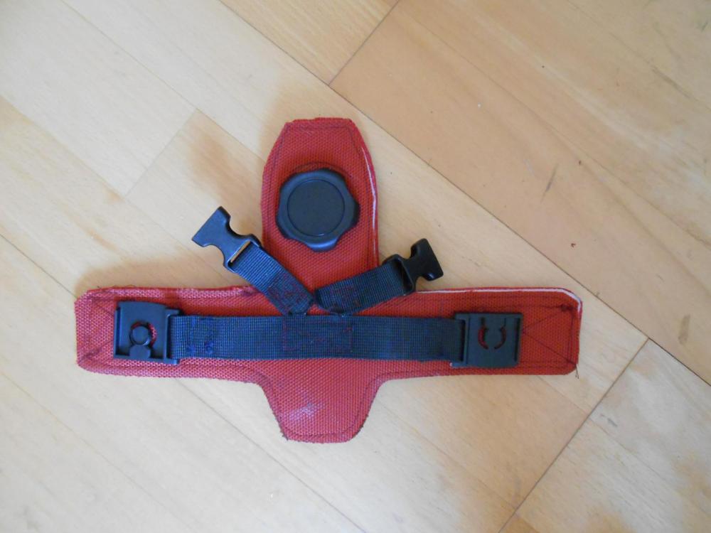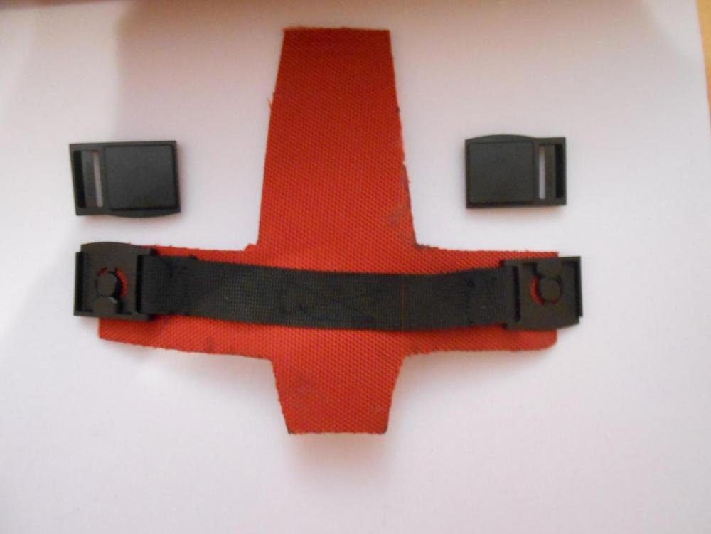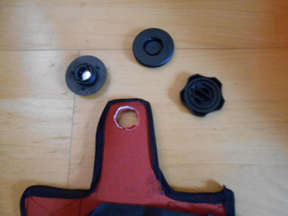 Also los gehts: Zuerst wird das Rückenteil ausgeschnitten und die zu befestigenden Teile positioniert. Wie immer bei bei mir vx, hatte ich mal günstig bekommen. Zum Befestigen an den Harnisch benutzte ich wieder einen Magnetverschluss, da mir das An- und Abschnallen immer zu lange dauert. Dieser hier wird durch seitliches Ziehen gelöst, die Gegenstücke befinden sich am Harness (kommt noch). Als Druckknöpfe, um den Rucksack zusammenzuklappen, nehme ich Kam Snaps (war auch noch da:-) ). Nachdem alles richtig liegt, wird es befestigt. Für die Verstärkung der Magnetverschlüsse wurde ein festes Gurtband genommen, für die Druckknöpfe reicht dicke Folie. Um die Magnetverschlüsse an die Tasche zu bekommen, habe ich schraubbare Gurtnieten benutzt. -