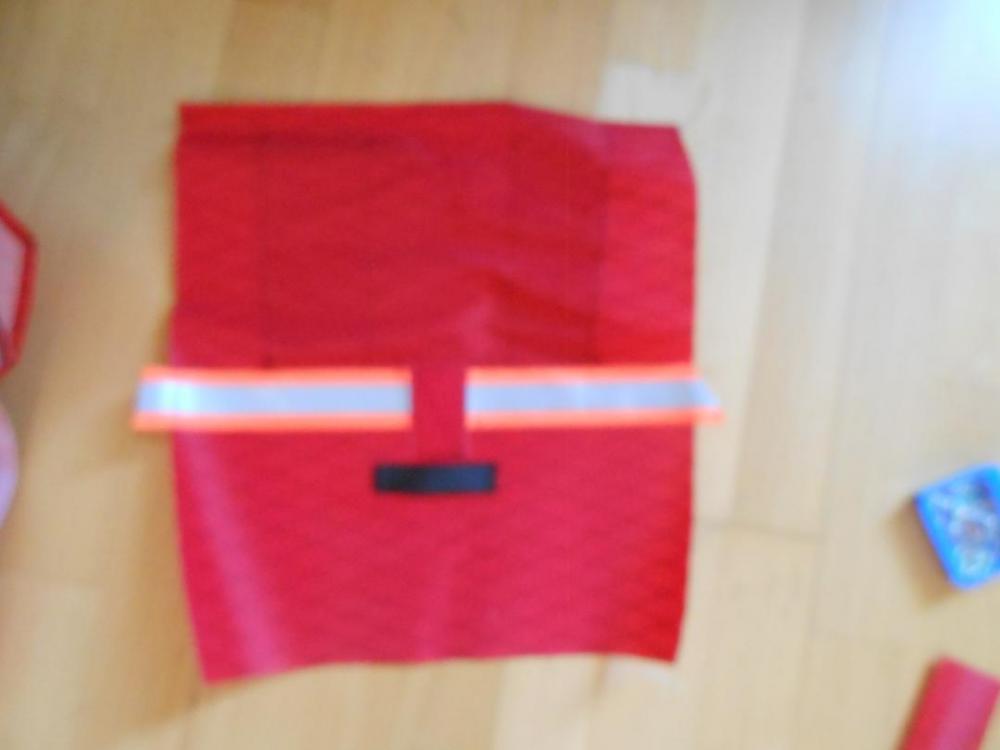 Fehlen noch das Vorderteil und der Deckel. Da das Vorderteil grösser ist, um mehr Volumen zu bekommen, wird der Deckel halbrund und bekommt einen breiten Rand mit Klettverschluss, so dass er die Tasche überlappt und sich beim Fahren leicht öffnen lässt. Das Ganze ist dann zwar nicht super wasserdicht, aber einen Wolkenbruch hatte meine alte Tasche damit gut überstanden. Beim nähen muss ein wenig "dreidimensional" gedacht werden, dies sollte man auch beim vorherigen berechnen der Maße im Hinterkopf haben. Auch das Vorderteil der Tasche bekommt Innentaschen.Und weil man ja Nachts sichtbar sein soll, gibs noch einen Reflexstreifen und ne Rücklichthalterung. Dann wird alles Links auf Links zusammengenäht (das Vorderteil ist breiter - also lieber erst die Seitennäht schliessen) -