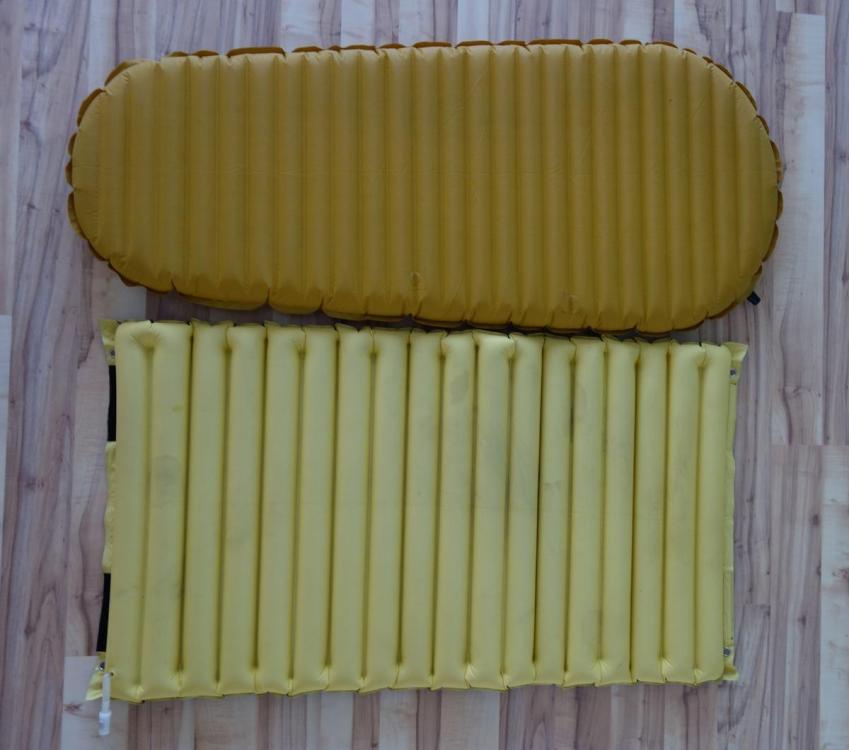 Nachdem es im Forum Sitte geworden ist, Kopien von westlichen Produkten anzupreisen, möchte ich euch mal ein exotisches Fernost-Produkt vorstellen, dass anders ist als alle anderen mir bekannten Produkte, in diesem Fall Luftmatratzen: die Üpon Mini Air Mat, hergestellt in Taiwan. Ich behaupte einfach mal, der erste Europäer zu sein, der auf einer solchen Matte geschlafen hat. Und ihr bekommt weltexklusiv die erste öffentliche Vorstellung der Matte auf deutsch. Die Üpon (untere Matte) neben einer Therm-a-Rest NeoAir Xlite Small: Meine Mini Air Mat ist mit 306g (inkl. etwas Spucke vom Aufpusten) auf 100cm 104g schwerer als meine 2015er Xlite mit 115cm. Außerdem isoliert sie schlechter (einfache Luftkammern, kein R-Wert angegeben). Und trotzdem stelle ich sie vor? Ja. Denn sie hat verschiedene andere Vorteile. Beispielsweise den dehnbaren Jerseystoff als Obermaterial. Das Material ist also nicht wie sonst üblich gewebt, sondern gestrickt. Nahaufnahme des Obermaterials: Im Vergleich dazu das Material der Xlite: Und das Material der Unterseite der Üpon (die hellen Striche sind Staub): Durch den Jerseystoff raschelt die Üpon-Matte weniger und fühlt sich besser auf der Haut an. Das Material nimmt dafür Schmutz leichter auf. Inzwischen haben @hinkelstein und ich erst jeweils ca. 1 Woche auf der Matte geschlafen. Zur Dauerhaltbarkeit kann ich aufgrund der kurzen Nutzung noch nichts sagen. Ich habe den Hersteller auf einer Fahrradkonferenz (VeloCity Arnheim) kennen gelernt, ihm die Matte abgeschwatzt und wir stehen seitdem im Mailkontakt. Laut Hersteller gibt es eine Matte, auf der eine Person dauerhaft seit 2 Jahren ohne Probleme schläft. Der Bodenstoff besteht aus 40den Nylon, ist also immer noch dünn, aber schätzungsweise haltbarer als andere günstige Matten wie bspw. die Robens Vapour (20den) oder die vor einiger Zeit mal so populären Aliexpress-Axeman-Matten. Im direkten Vergleich finde ich die Üpon viel bequemer als die Xlite. Die Matte schmiegt sich irgendwie besser an den Körper an als die Xlite, egal bei welchem Luftdruck. Ob das an dem dehnbaren Obermaterial oder der anderen Kammerkonstruktion liegt, weiß ich nicht. Die Üpon ist 1,3cm flacher als die Xlite, womit der Übergang zwischen Matte und Boden an den Beinen etwas flacher ist (ja, natürlich blase ich die Xlite nie ganz auf, sodass auch da keine 6,4cm-Stufe ist). Außerdem ist die Üpon auf der ganzen Länge gleich breit, was besonders bei unruhigem Schlaf angenehmer ist. Neben Gewicht und geringer Isolierleistung bin ich mit dem Ventil nicht ganz zufrieden. Mit einem etwas größeren Lufteinlass sollte das Aufpusten schneller gehen. OK, bei der Xlite ist der Lufteinlass ähnlich klein und für beide Matten brauche ich jeweils ca. 40 sek., um sie mit dem Mund aufzublasen. Laut Hersteller sind die Ventile von Therm-a-Rest etc. patentgeschützt und daher teuer, weshalb sie sich gegen dessen Nutzung entschieden haben. Wie ihr auf dem oberen Foto sehen könnt, hat die Üpon am Kopf- und Fußende Ösen und Klettverschluss, sodass sie mit anderen Matten koppelbar ist. Vielleicht sind die Ösen für manche praktisch zum Befestigen des Quilts? Ansonsten bieten die Enden Potential zum Gewichtssparen mit der Schere. Die Üpon kostet aktuell im Onlineshop 46$, also je nach Wechselkurs 35-40€. Das ist weniger als die Hälfe des Xlite-Preises. Wer also eine komfortable und günstige Sommermatte sucht, dem kann ich die Üpon empfehlen. Falls ihr Fragen oder Anmerkungen habt, immer her damit. Und sobald ich die Matte zerstört bekommen habe, lasse ich euch das natürlich wissen.