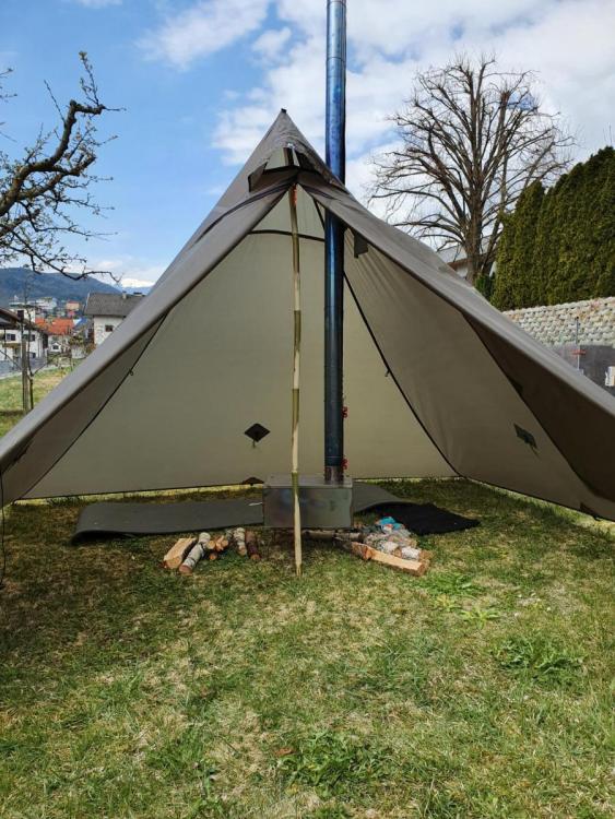 Ich muss das Zelt nochmal aufbauen um zu sehen wo ich den durchlass einsetze. Das supermid hat an jedem panel eine quernaht oben an der Spitze. Ich wollte den durchlass darunter setzen ohne die Naht zu verletzen und den durchlass etwas nach vorne zum Eingang bringen was bei einer Pyramide leichter möglich ist wenn der durchlass etwas tiefer liegt. In etwa so wie beim minipeak xl winter mit Ofenrohrdurchlass Aber danke vielmals für deine Anregungen. Sind schlüssig für mich! Lg