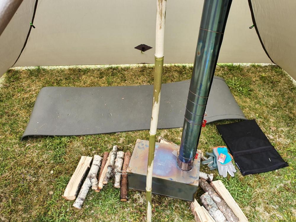 Der Nachteil des hohen Ofenrohrdurchlass ist, dass der Ofen relativ mittig im Zelt zu stehen kommt sofern das Ofenrohr senkrecht sein soll. Das führt zu schlechterer platzausnützung und dazu, dass man beim ein- und aussteigen aus dem Zelt sehr darauf achten muss sich nicht am heißen Ofen zu verbrennen.