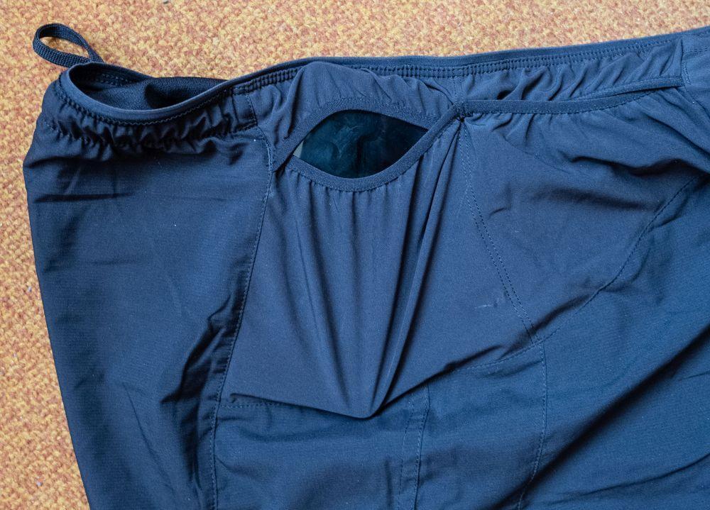 Es gibt 5 Taschen. Eine kleine hinten mit Zipper. Zwei seitlich vorne, die sind größer. Zwei seitlich hinten. Passt dabei in die vorderen Taschen. Fällt auch nicht raus, das System hält alles ganz gut. Steht aber etwas ab, ist nicht die eleganteste Variante. Halt funktionell.