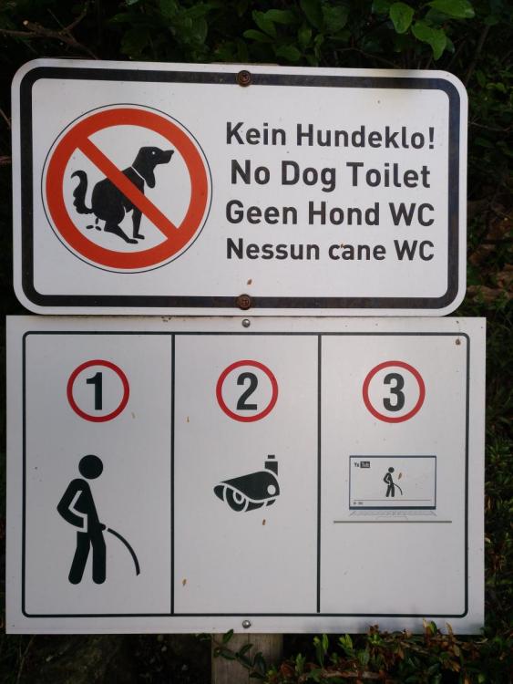 Bis gerade dachte ich immer, das bedeutet: Pipi machen, Pipi-Videos aufnehmen und Pipi-Videos gucken verboten. Soeben erschließt sich mir der Sinn des Schildes erst: Wer hier Pipi macht, wird gefilmt und das Video erscheint im Internet! Unmissverständlich jedenfalls: Hunde dürfen kein Pipi machen! Auf jeden Fall hat da jemand schlechte Pipi-Erfahrung gemacht...