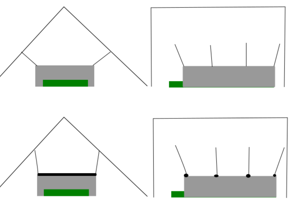 Bei meiner letzten zeichnung - die Seitenansicht oben. Da habe ich zwei Schlaufen eingezeichnet, wodurch die Leine das "Dreieck" hält. Wenn ich dich verstanden habe, soll ich die Schnur an der linken schlaufe einplanen, statt diese von der Stange aus zu verlegen? Also so: -