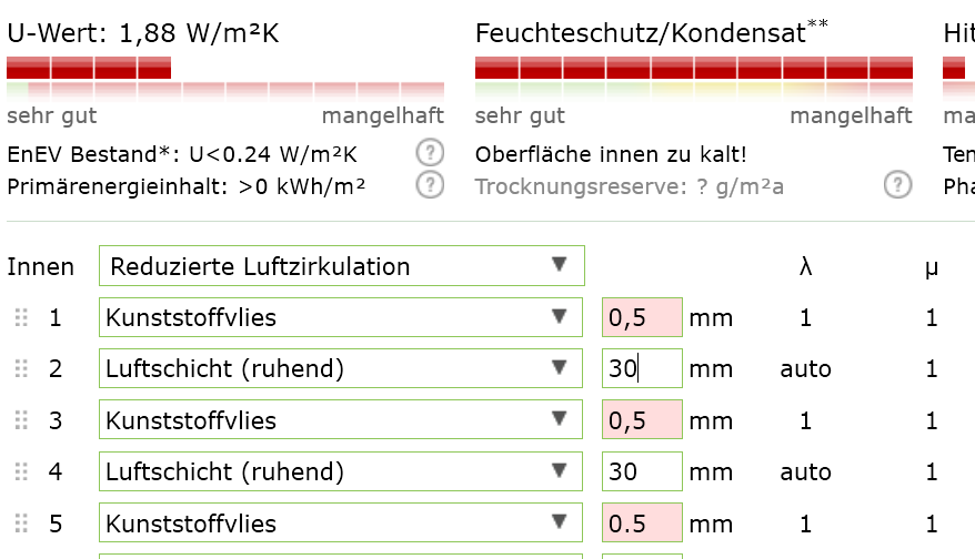 Sorry - aber das geht nu ganz am Thema vorbei: die GEBÄUDEdämmung (!) hat null mit dieser Art Dämmung zu tun. Lückenlos ist ja klar! -20 Draußen -> +22^° Innen -> Feuchtigkeit schlägt sich innerhalb der mel. Bauschäden. Das hat ja null mit einem Schlafsack zu tun und passt hier so gaarnicht https://www.energytools.de/wissen/hausbau-und-erneuerung/bauteilekonstruktionen/aussenwand/innendaemmung/lueckenlos-und-luftdicht.html -