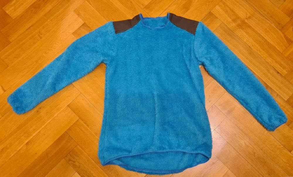 7. Die Temperaturen fallen mittlerweile ja von Tag zu Tag, sodass eine wärmende Zwischenschicht angesagt ist. Inspiriert durch die Diskussion über Polartec Alpha (https://www.ultraleicht-trekking.com/forum/topic/10716-suche-polartec®-alpha®-pullover/) habe ich mir den 130g-Stoff von Extex besorgt. Dieser ist warm, leicht und zottelig - was will man mehr. Den Schnitt habe ich einfach von einem passenden Pullover abgenommen und an Armen und Rumpf stark verlängert. Die Schultern habe ich mit etwas Cordura verstärkt, damit das ganze rucksacktauglich wird, und alle Säume mit elastischem Band eingefasst. So sieht das fertige Stück dann aus: Mit ordentlicher Überlänge lässt sich damit der ganze Rumpf warm halten, was vor allem beim Schlafen sehr angenehm ist: Das ist der große Vorteil von Myog - kein käuflicher Pullover ist mir lang genug. Allerdings komme ich mir darin nun auch vor wie das sympathische Wesen aus der entsprechenden Kindersendung... Dieser Stoff lässt sich auch recht gut komprimieren - natürlich nicht wie Daune, aber doch sehr akzeptabel. Daher schnell noch einen kleinen Packsack genäht, der aus dem Pelzungetüm ein handliches Päckchen macht: Und das Wichtigste zum Schluss: Trotz der durchaus üppigen Dimensionen wiegt das gute Stück nur 230 Gramm + 8 Gramm Packsack. Den Praxistest trage ich später nach. In diesem Sinne: Frohe Wintertouren!