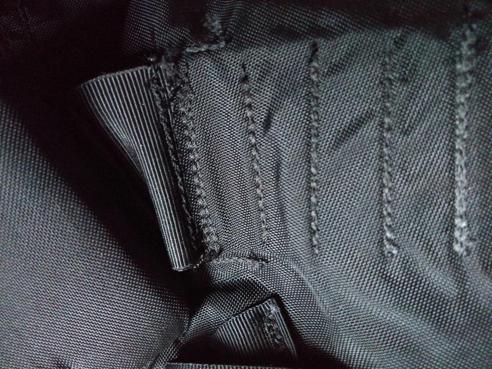 Also, der Ray Jardine-Rucksack ist schon etwas aufwändiger. Dort ist eine doppelte Lasche an den Schultergurten, die durch eine Schlitz in die verstärkte Rückenpartie gesteckt wird, und die eine Hälfte der Lasche wird innen nach oben und die andere innen nach unten geklappt und festgenäht. Bei meinen neuen Rucksäcken mache ich es ähnlich wie hier im Originalbeispiel, aber mit mehreren cm, die innen umgeklappt werden. Und dann mehrfach quer drübernähen, z.B. 5 Nähte in kleinem Abstand, und jede Naht jeweils 3 oder 4-fach. Dies ist die kritischste Naht am ganzen Rucksack, besonders die Ränder, da dort die ganze Last dran hängt wenn man den Rucksack an einem Gurt hochhebt und schräg zieht.